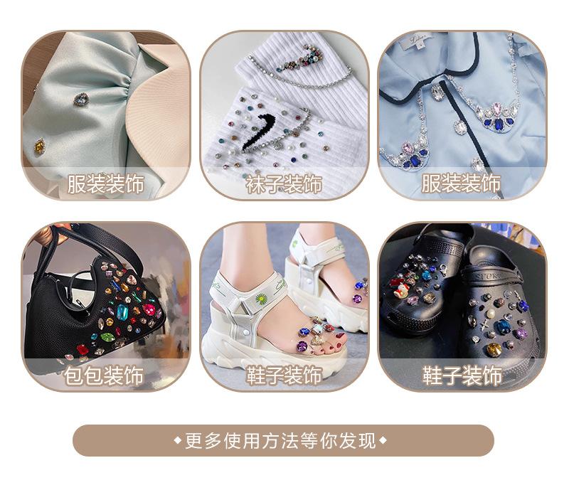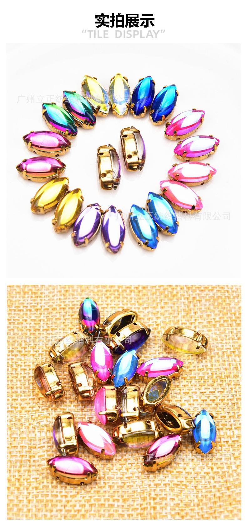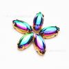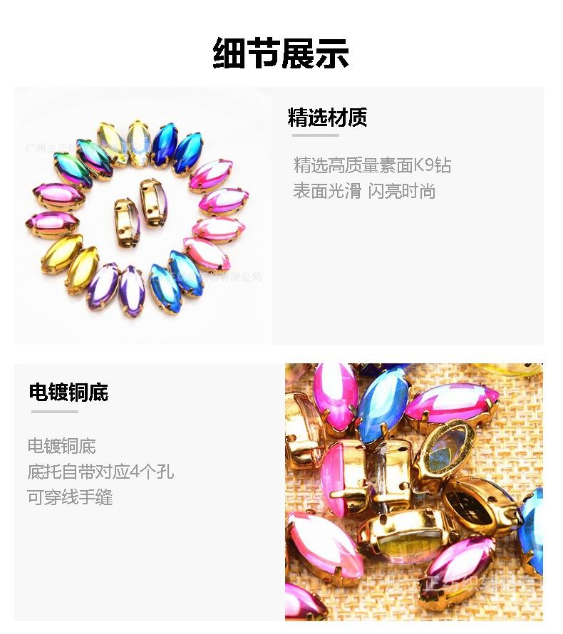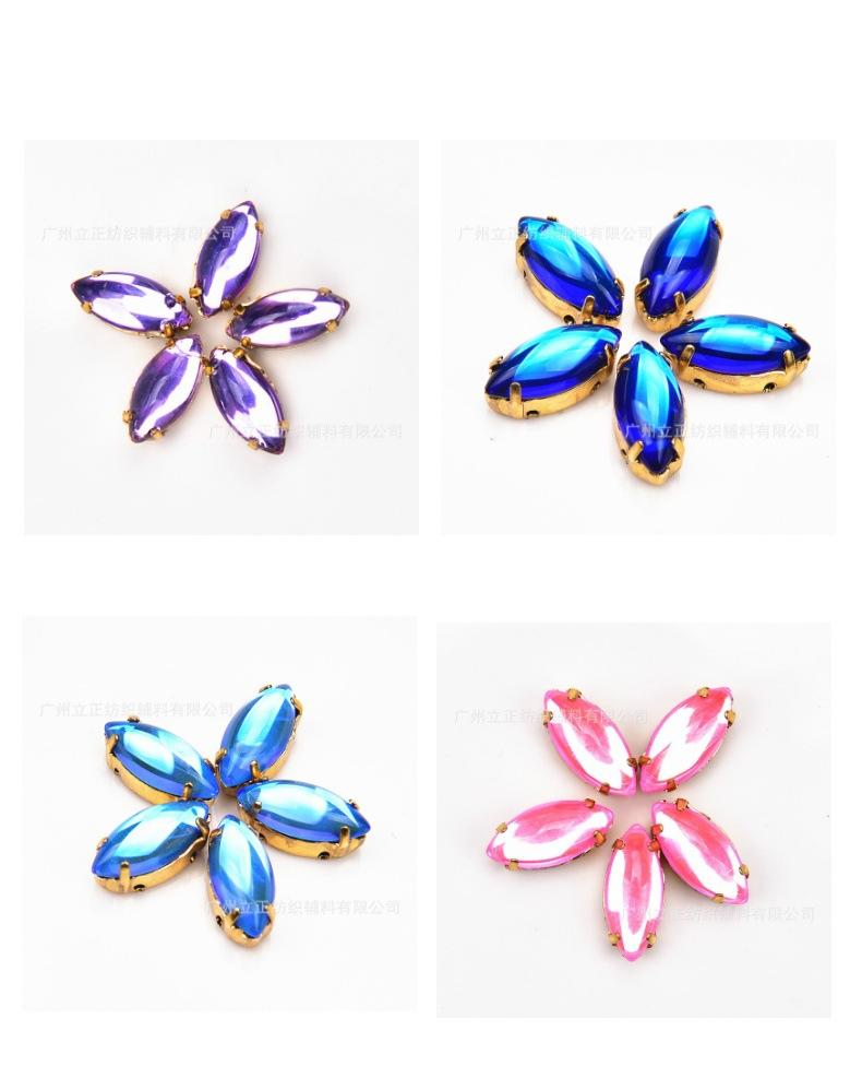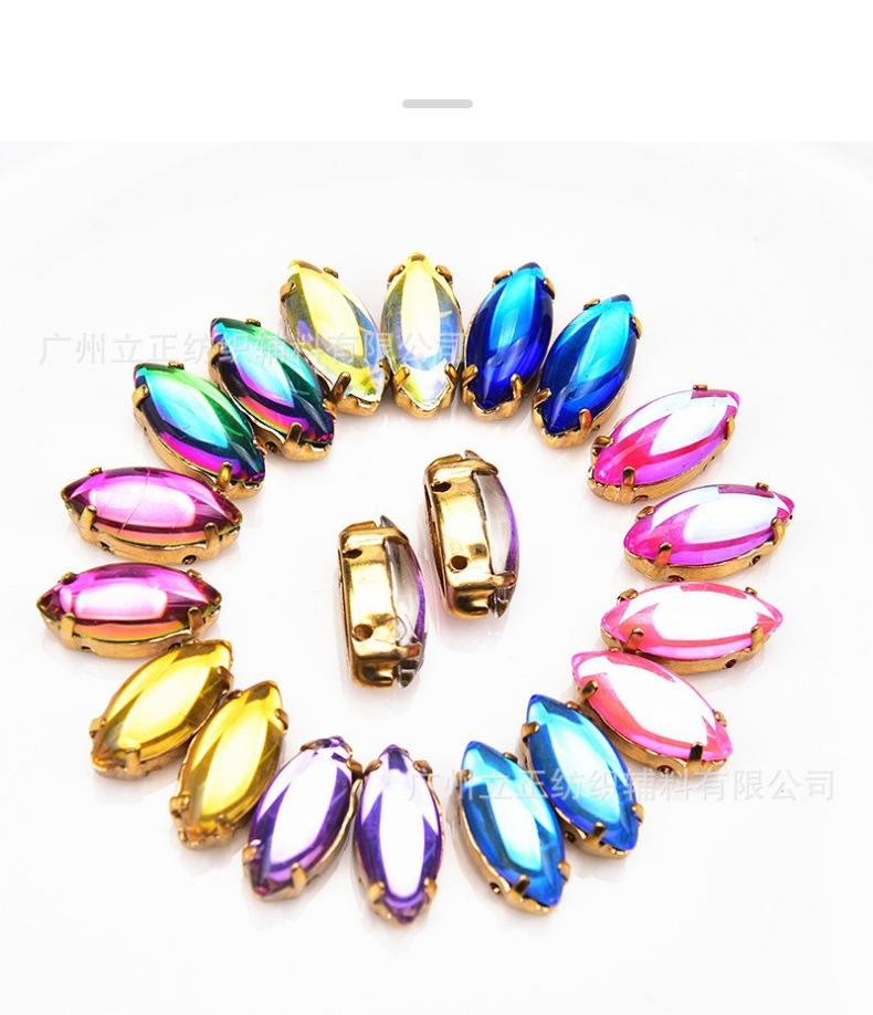 【Contenido】:Diamante iridiscente liso de fondo plano + base gruesa de cuatro puntas chapada en oro; hay 4 correspondientes en la parte inferioragujero, puede ser roscado