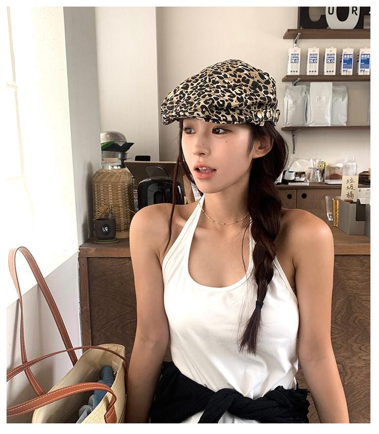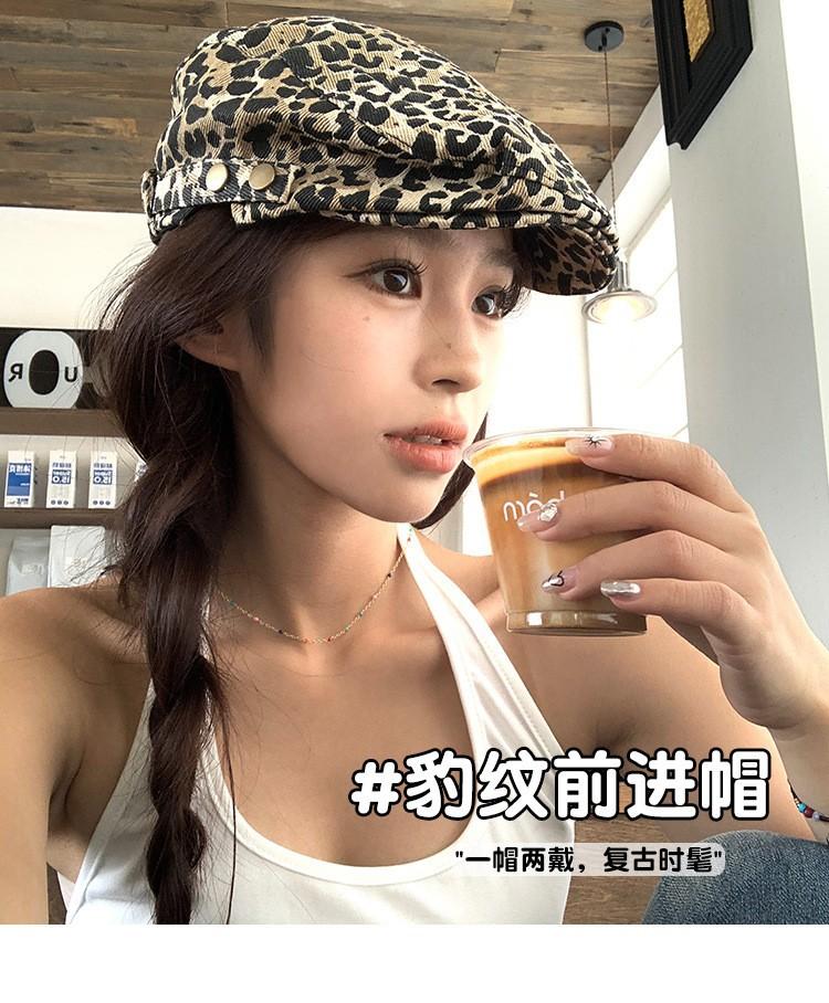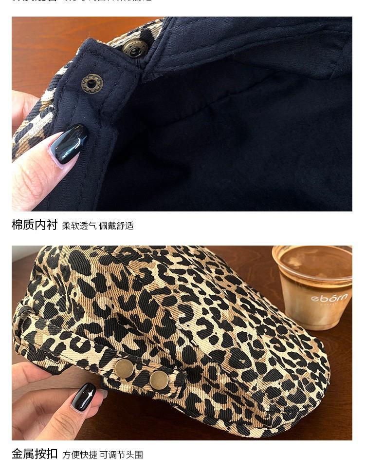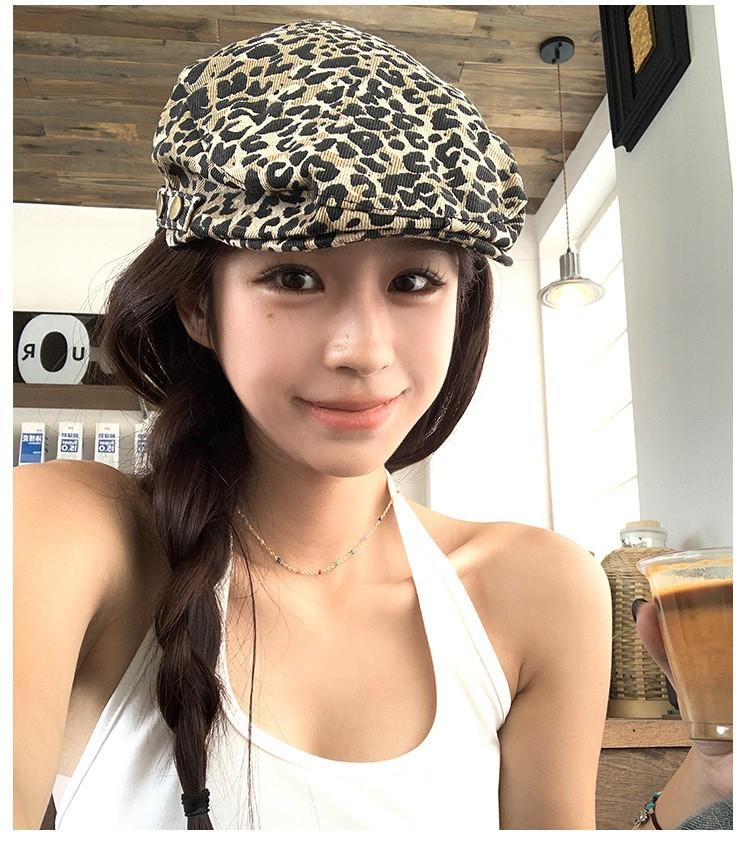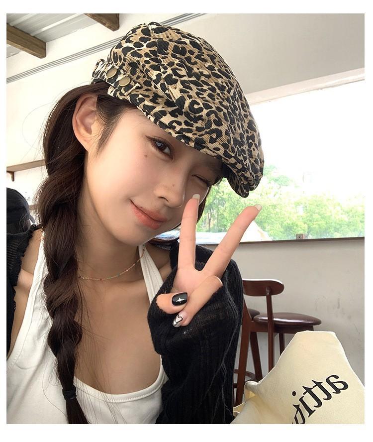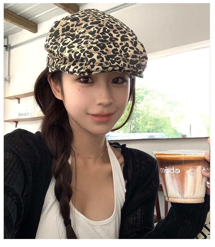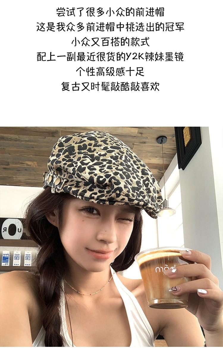 Sombrero de Nicho Móvil de Primavera y Otoño Diseño ins Moderno Estampado de Leopardo Sombrero Retro Progresivo Moda Femenina Boina Versátil