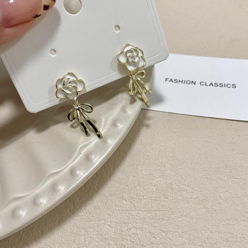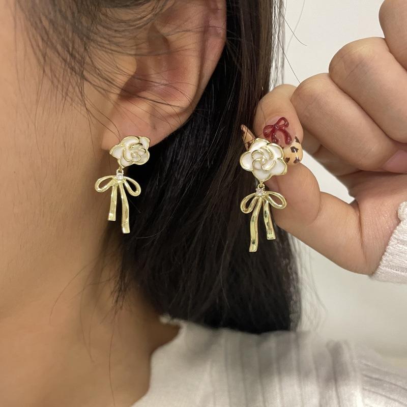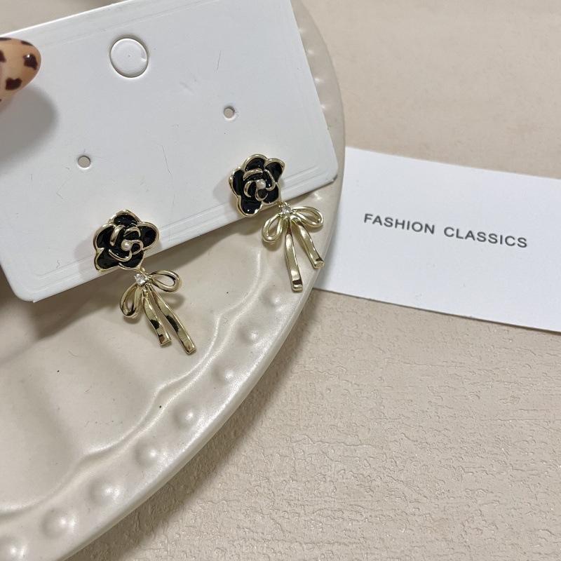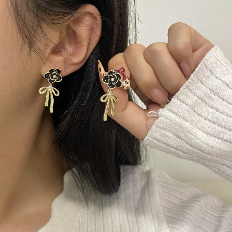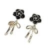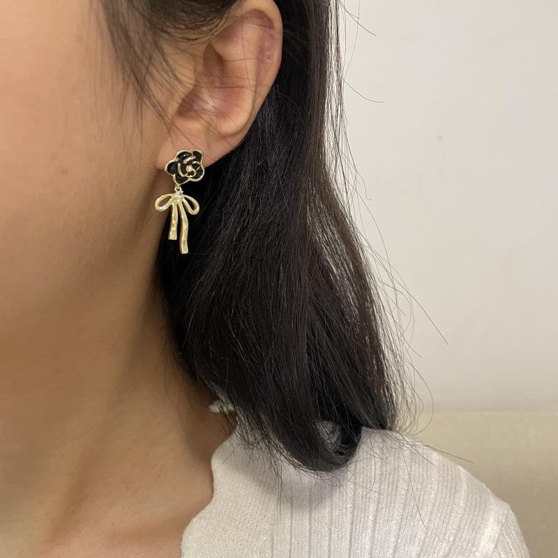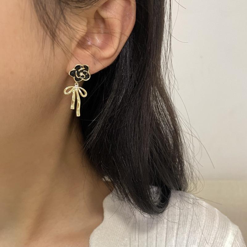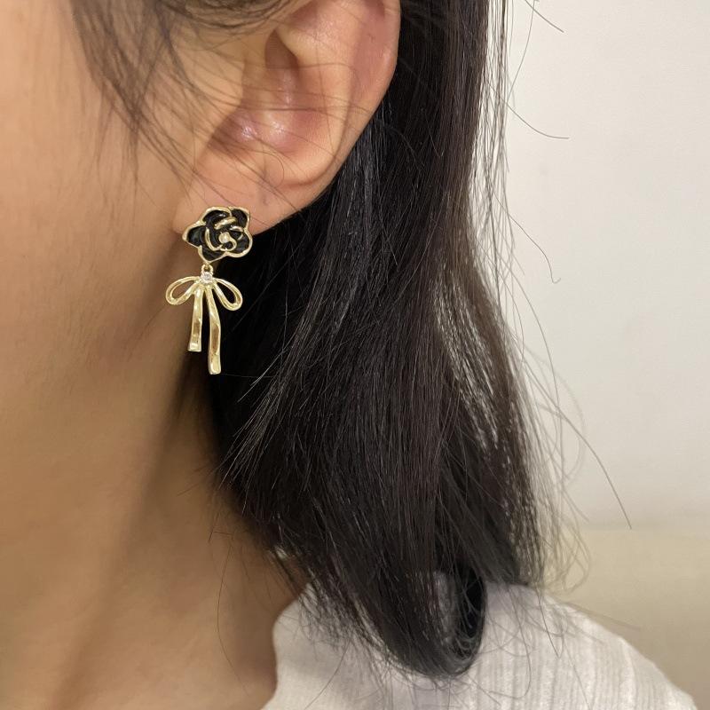 Pendientes de lazo de flores de lujo, ligeros y retro franceses, de alta gama, estilo Chanel, exquisitos pendientes de nicho.