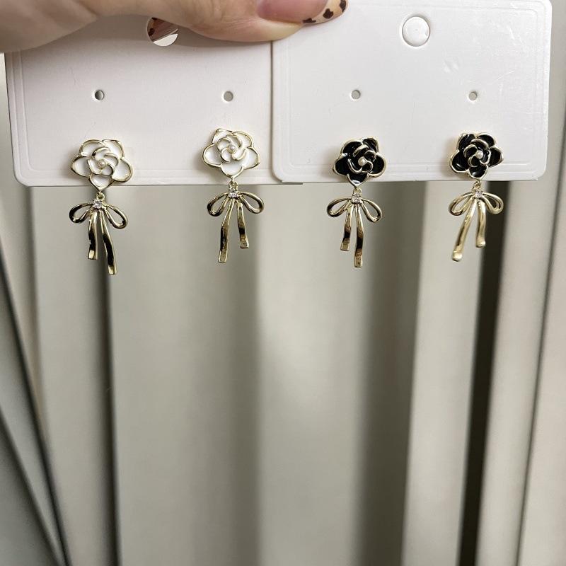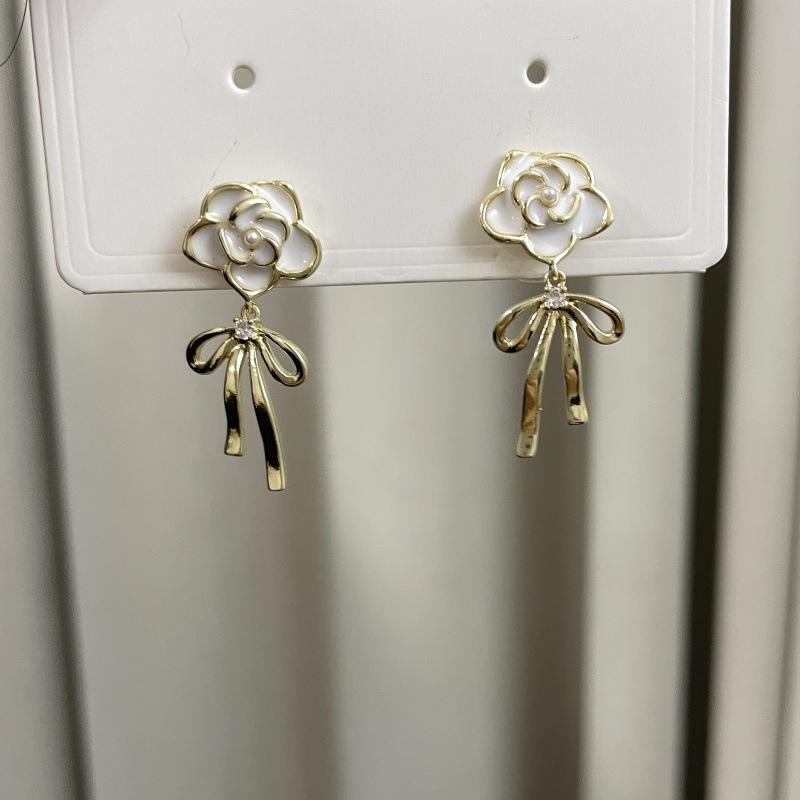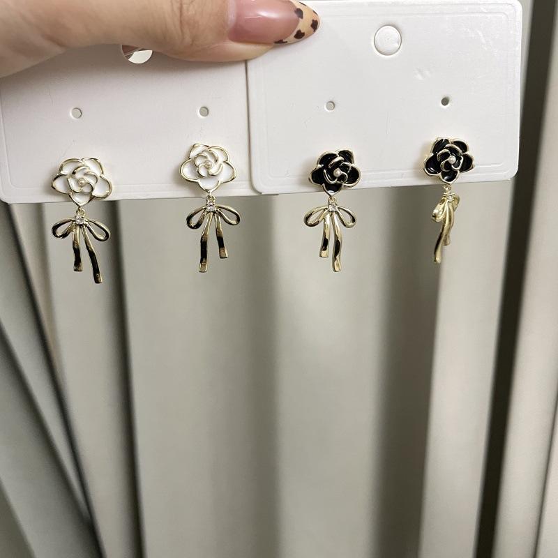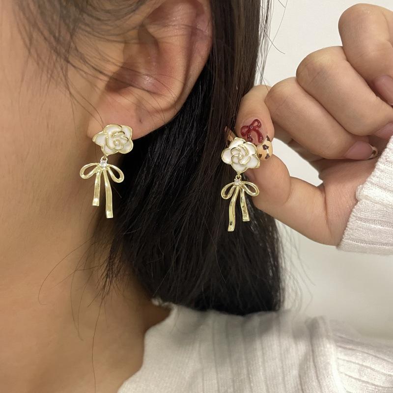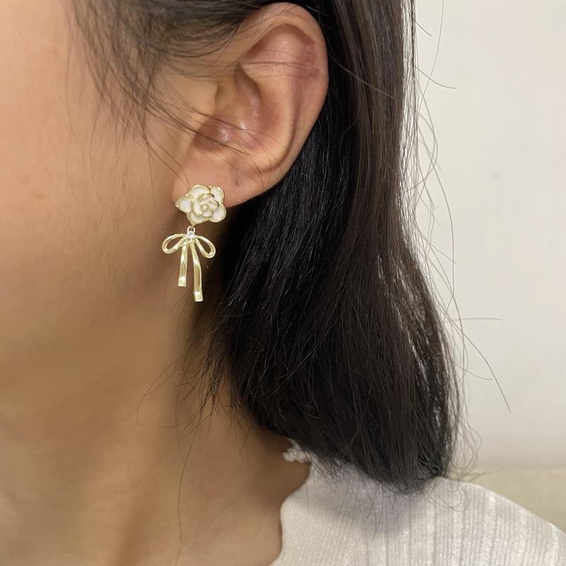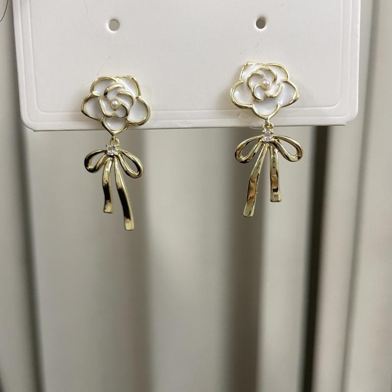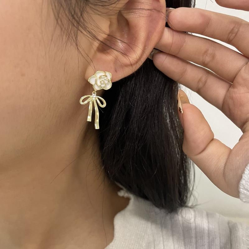 Pendientes de lazo de flores de lujo, ligeros y retro franceses, de alta gama, estilo Chanel, exquisitos pendientes de nicho.