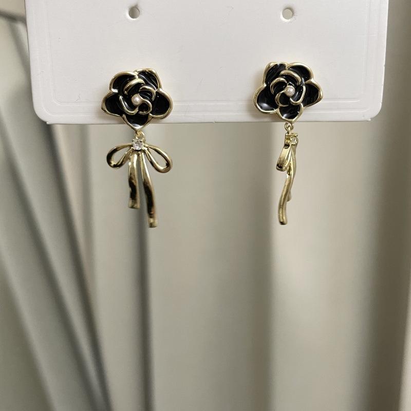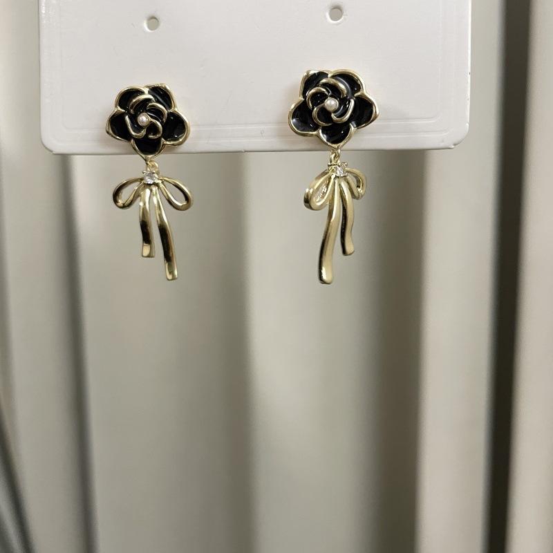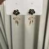 Black flower bow earrings