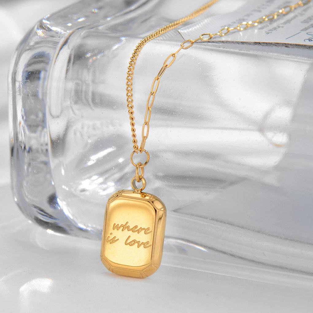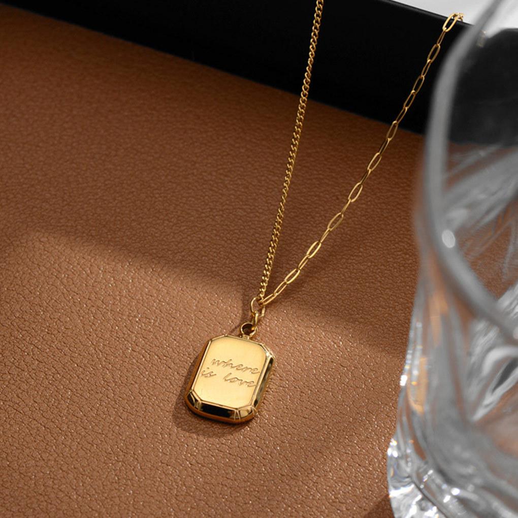 Collar de acero de titanio con grabado cuadrado pequeño a la moda, cadena AB explosiva, cadena de clavícula con personalidad, diseño de nicho, collar para mujer que combina con todo