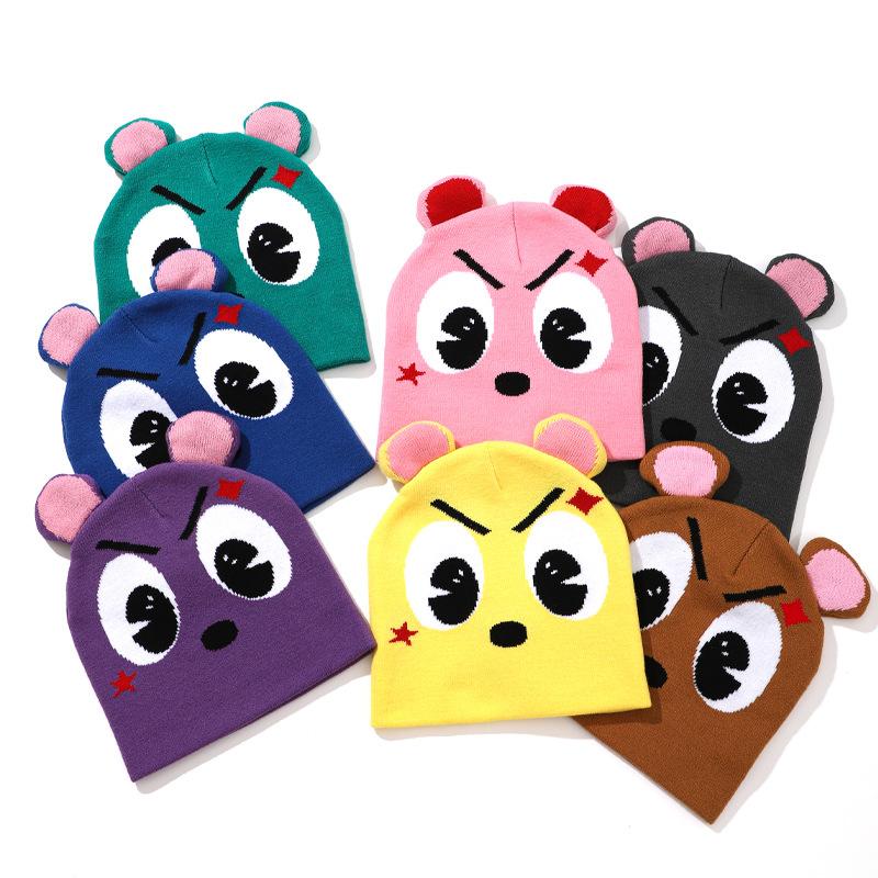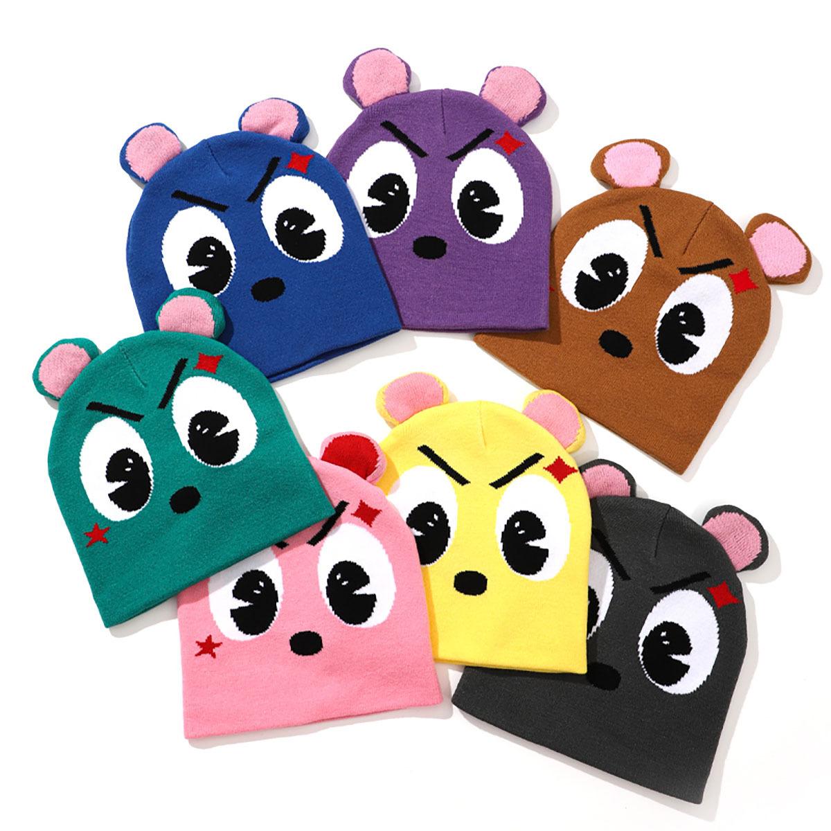 Gorro de punto de moda de dibujos animados europeos y americanos, gorro jacquard resistente al frío, gorro para montar al aire libre de otoño e invierno, gorro cálido que combina con todo, venta al por mayor