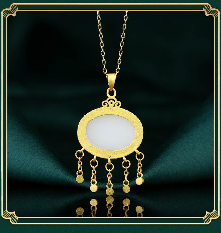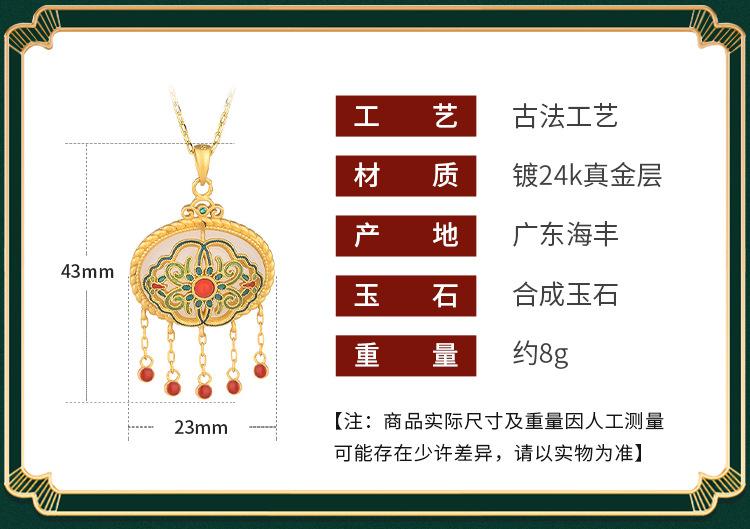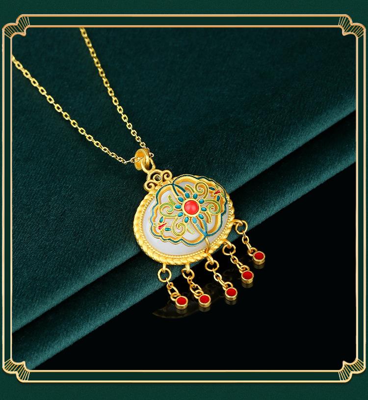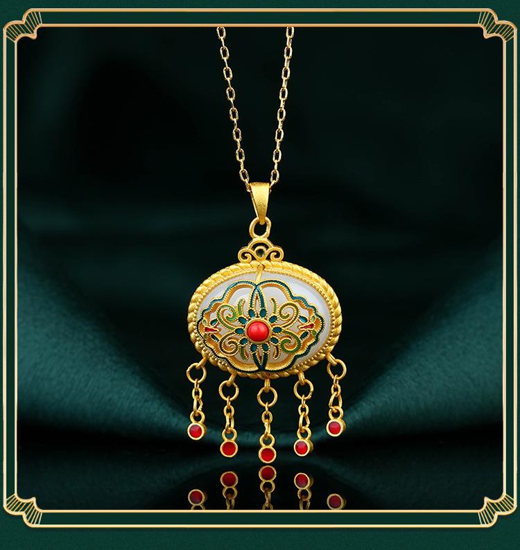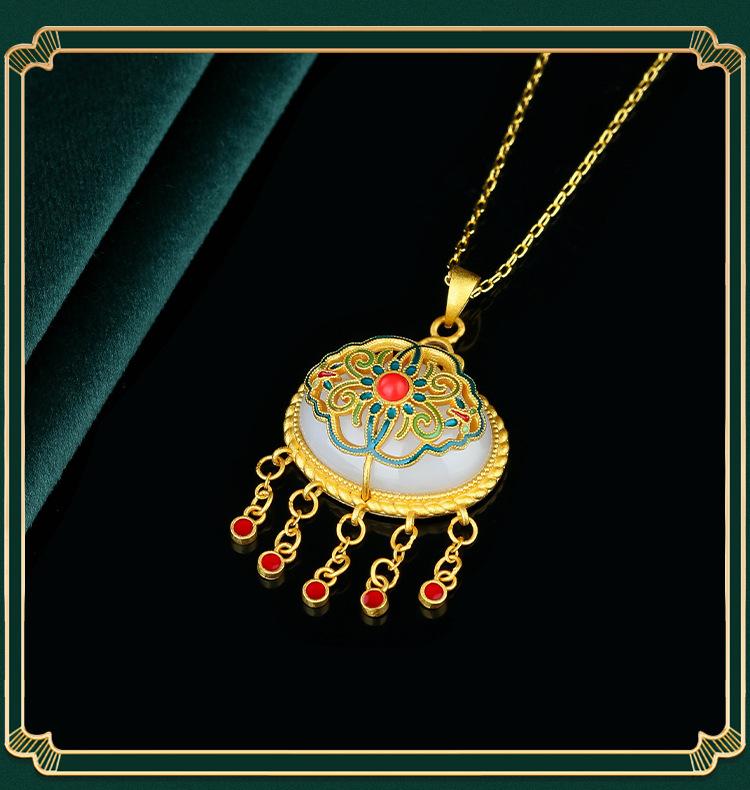 Nuevo colgante clásico chino de cheongsam y hanfu con flores pintadas de esmalte fugui, collar vintage de imitación de jade hetian para mujer