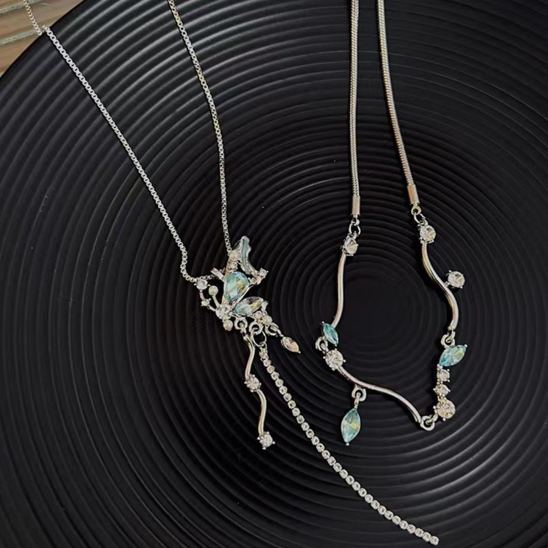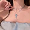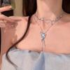 Collar de Cristal Azul Estilo Lujo Ligero Diseño Nicho para Mujer Alta Gama Nuevo Estilo Caliente 2025 Cadena Clavícula Collar Colgante