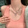 Collar de perlas naturales con costuras de amor para mujer, ligero, lujoso, elegante, de alta calidad, cadena de clavícula, combina con todo el verano.