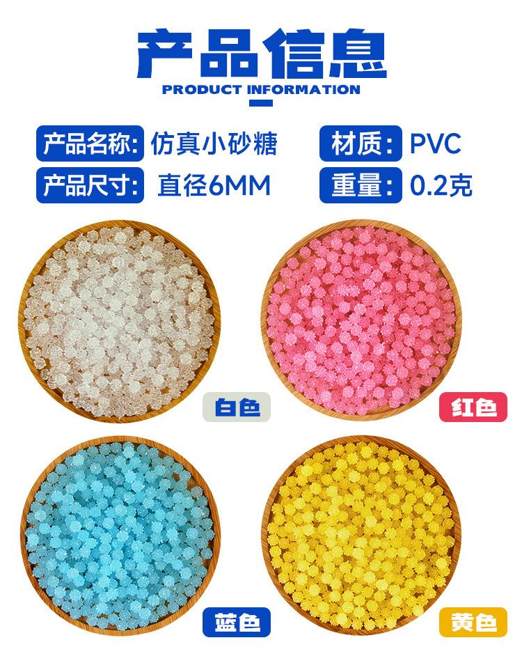 Transparent sugar, Pink sugar, Yellow sugar, Small blue sugar, Mixed color sugar