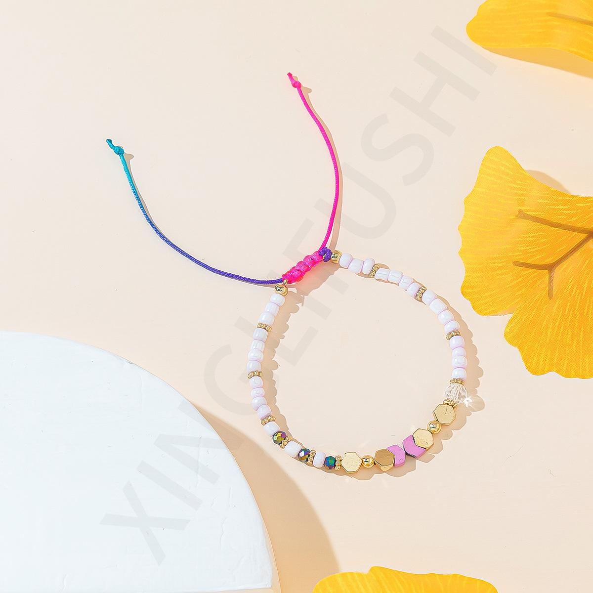 Pulsera cruzada nueva de cristal con cordón de estilo festivo, pulsera de moda para mujer, pulsera de metal con combinación de colores, cuerda de mano ajustable, joyería de mano