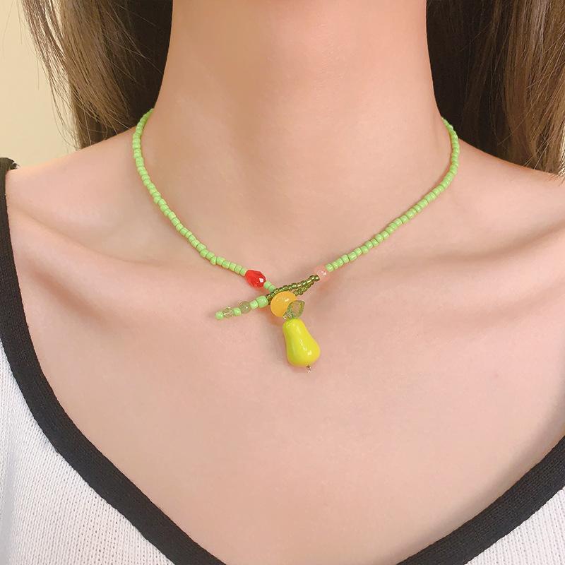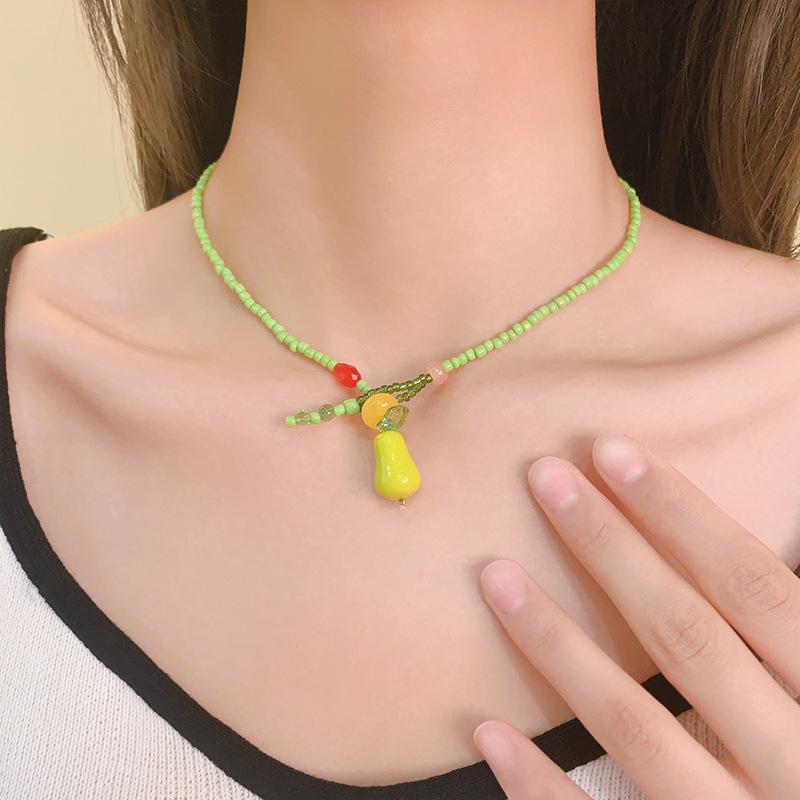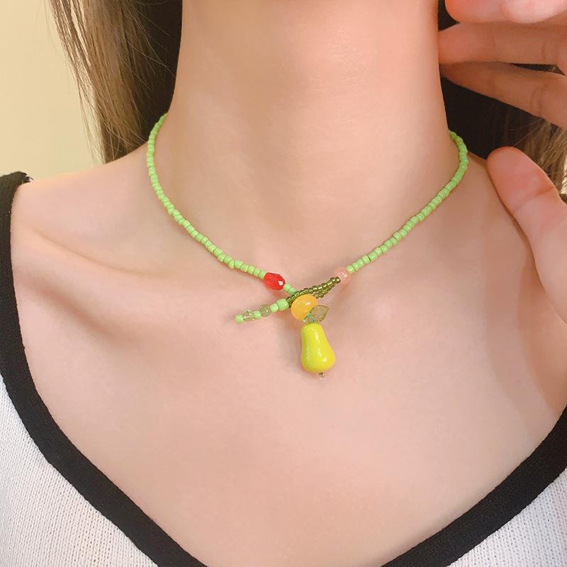 Collar de cuentas con diseño de nicho fresco de verano con jugo de pera, cadena de clavícula de alta calidad que combina con todo, cadena de moda para mujer