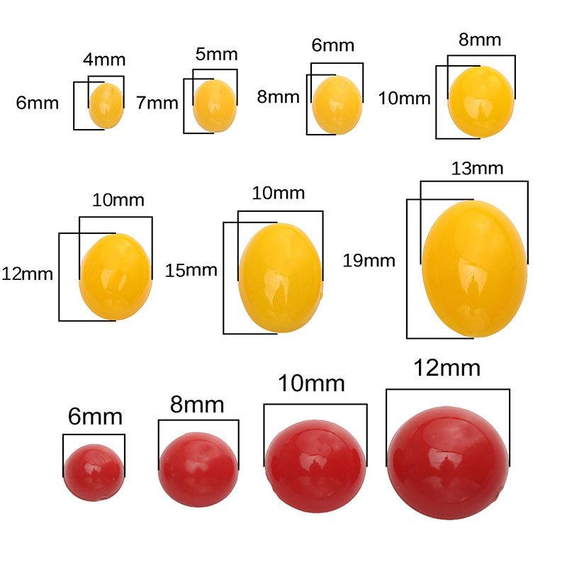 Round 12mm red 50/bag, Round 10mm red 50/bag, Round 8mm red 100/bag, Round 6mm red 200/bag, Oval 13x 19mm yell...