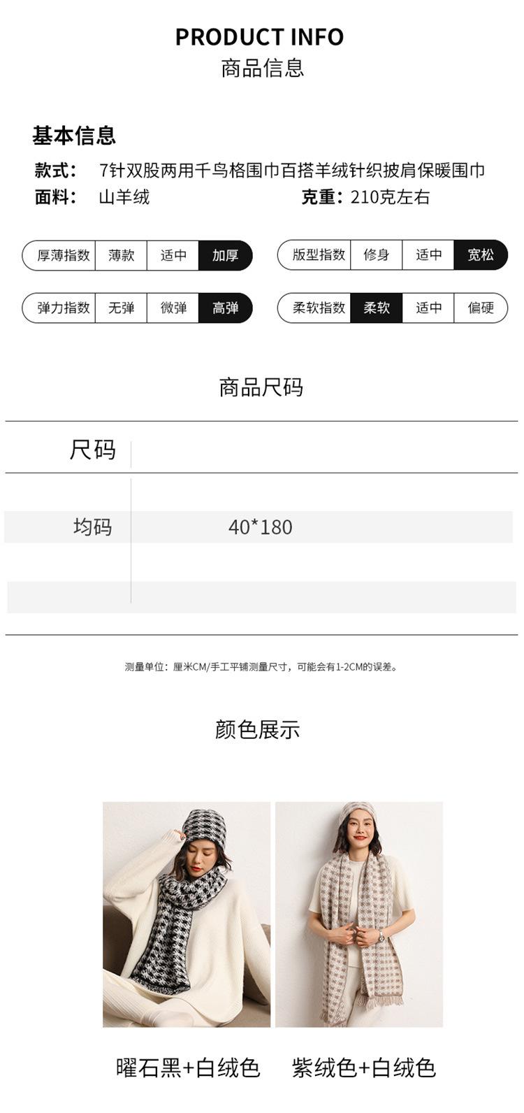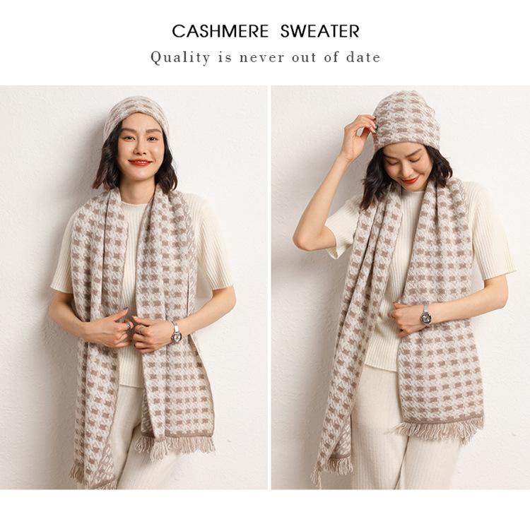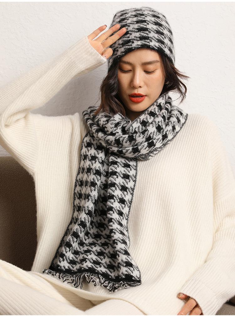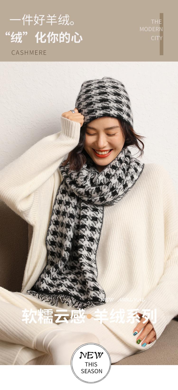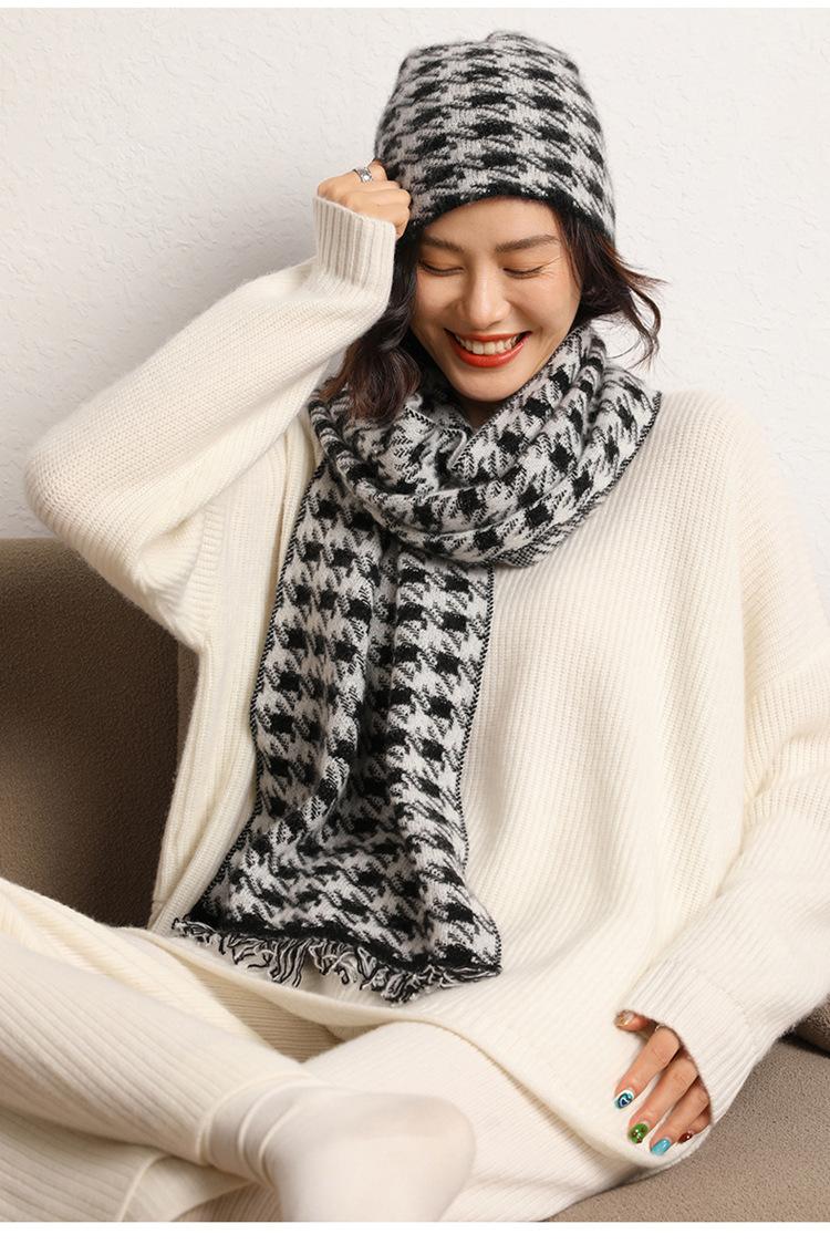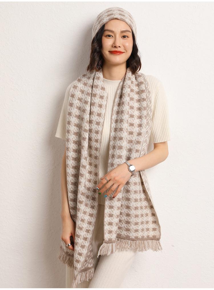 2024 otoño e invierno nuevo para mujer suave glutinoso cachemira doble uso cálido pata de gallo bufanda suéter chal bufanda