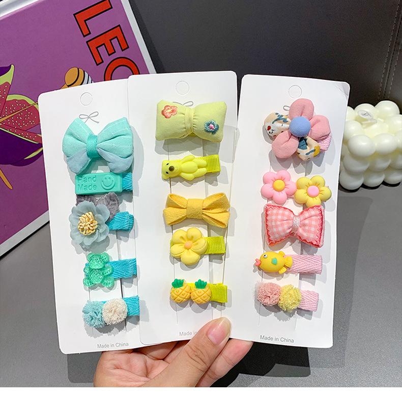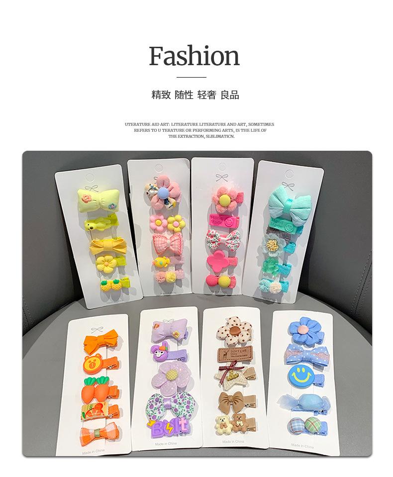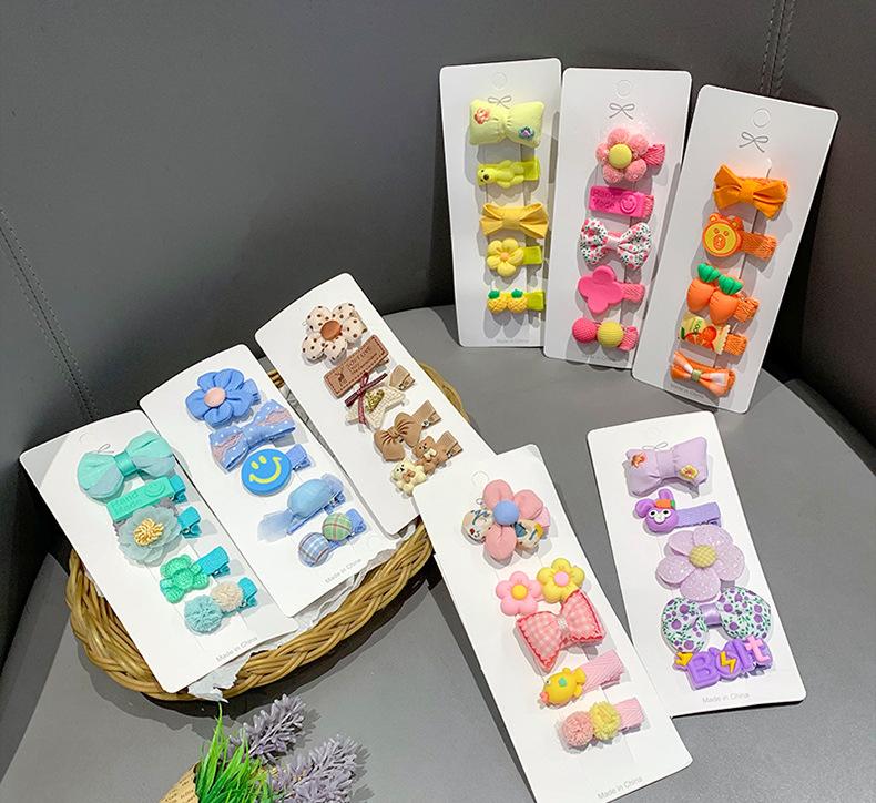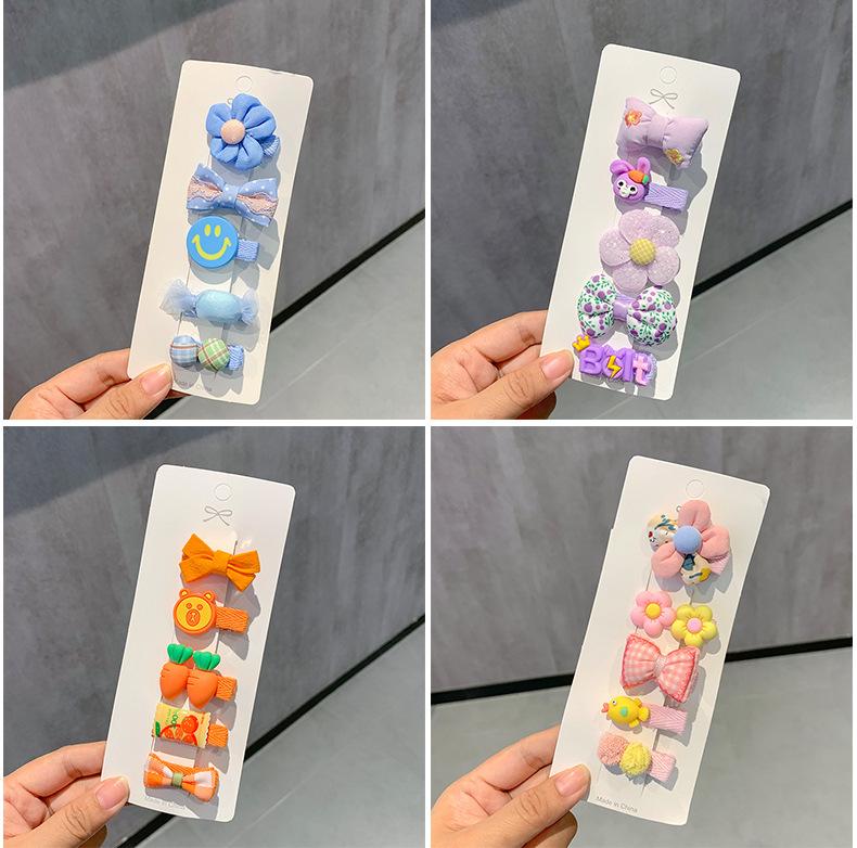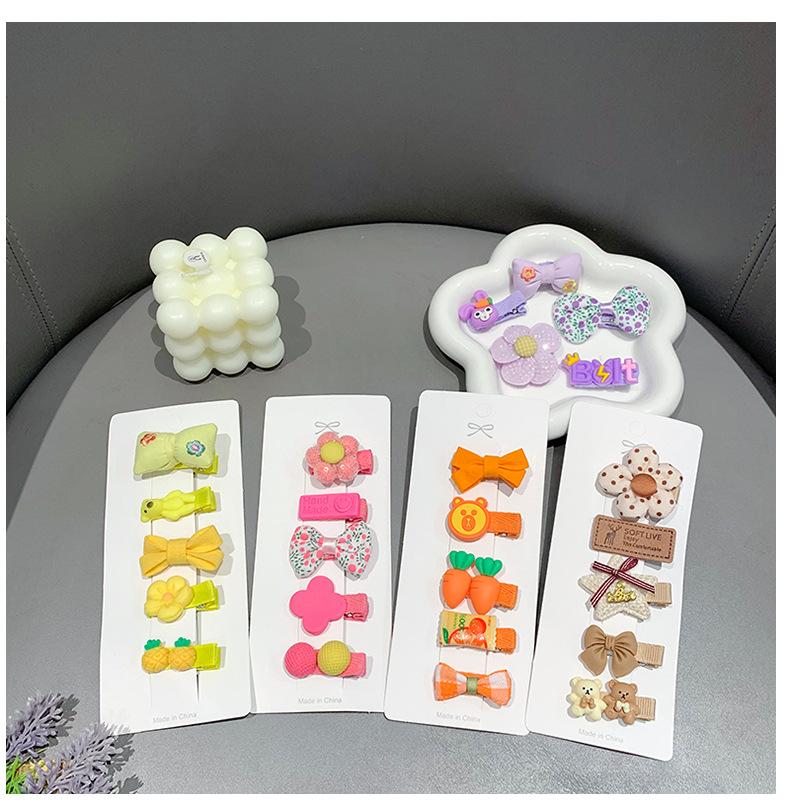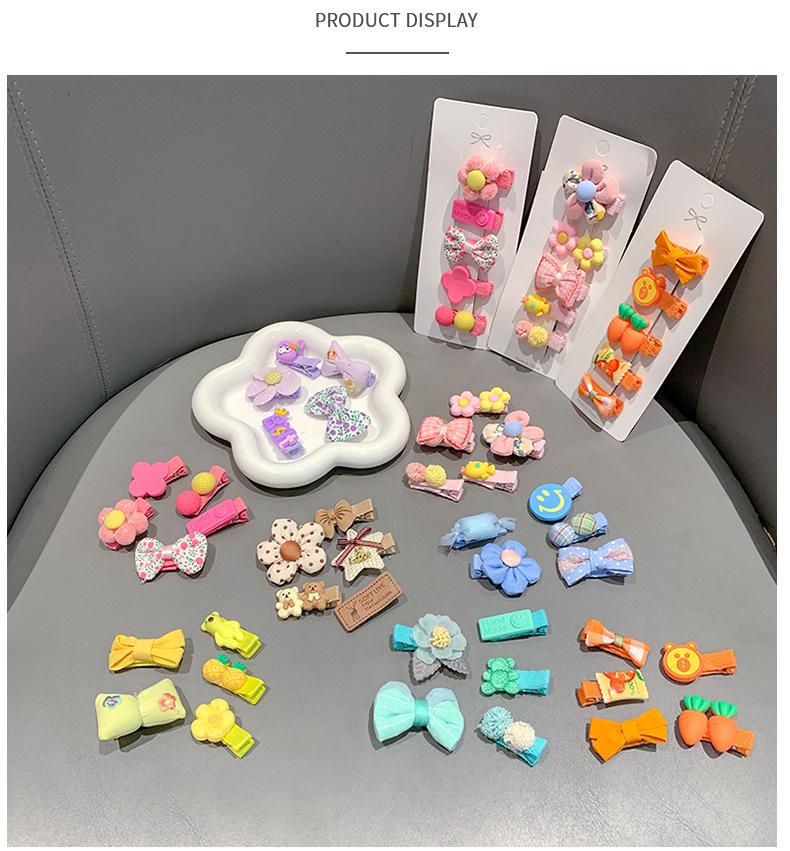 Purple bow, Light pink bow clip, Brown bear clip, Rose flower clip, Orange carrot clip, Green camellia clip, B...