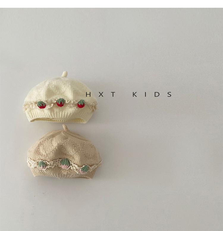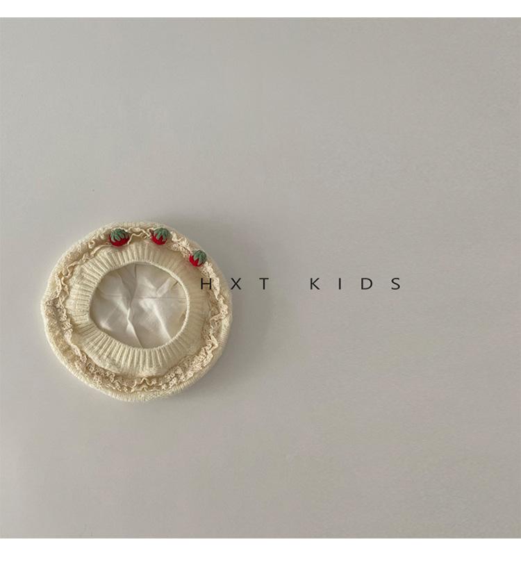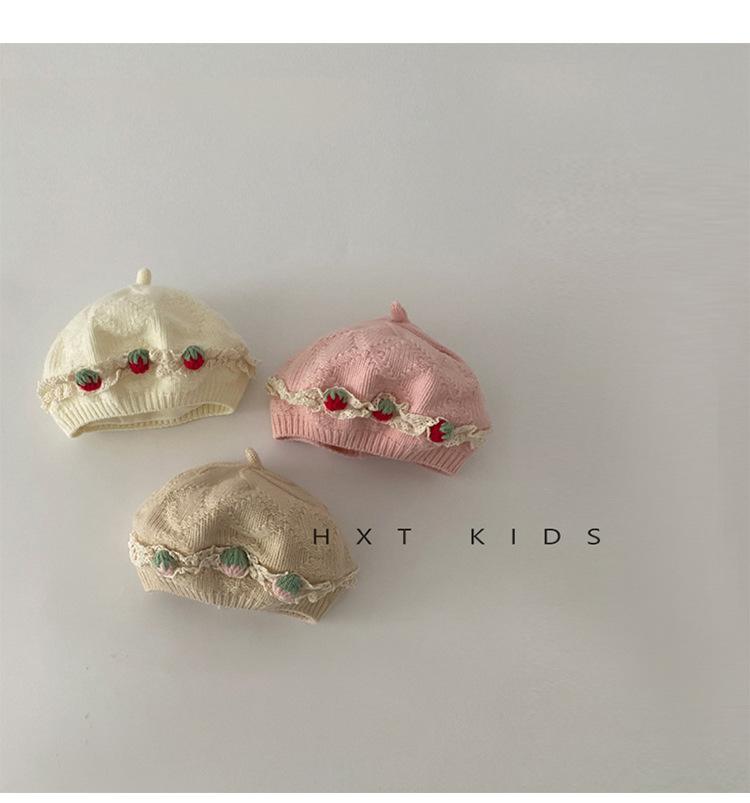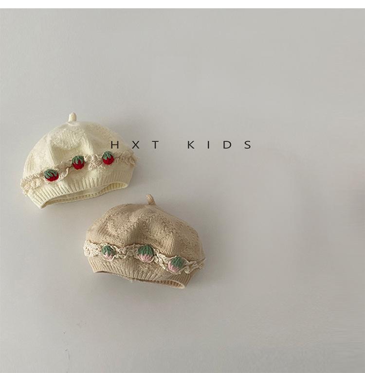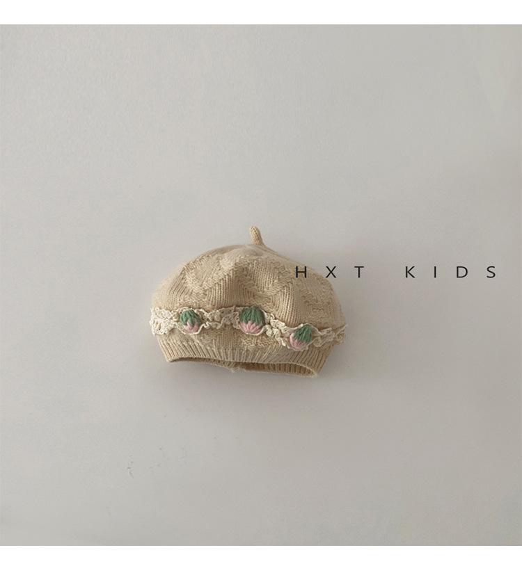 Boina de bebé para otoño e invierno, elegante gorro de pintor con flores pequeñas, ropa de moda de invierno para bebés, gorro de punto coreano.