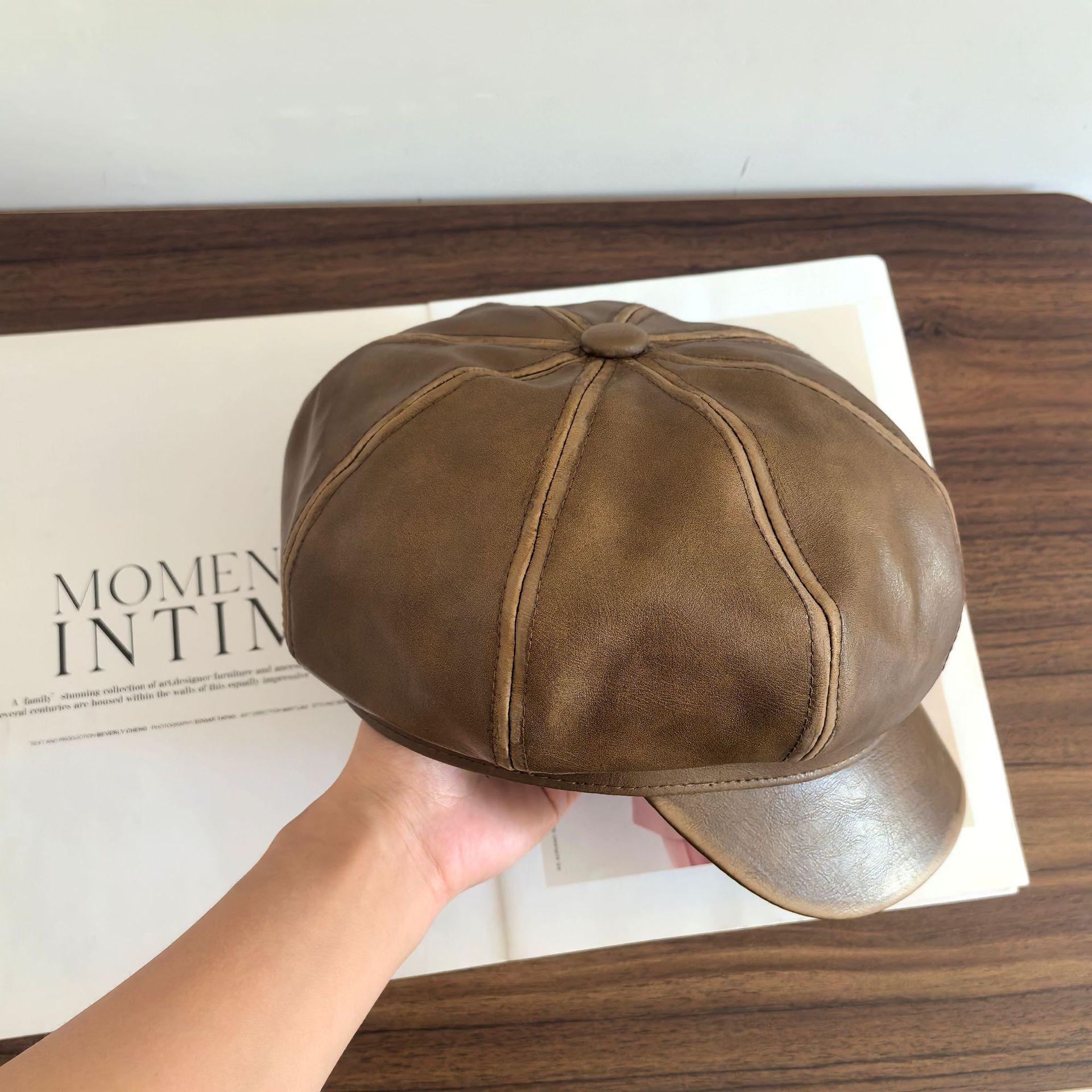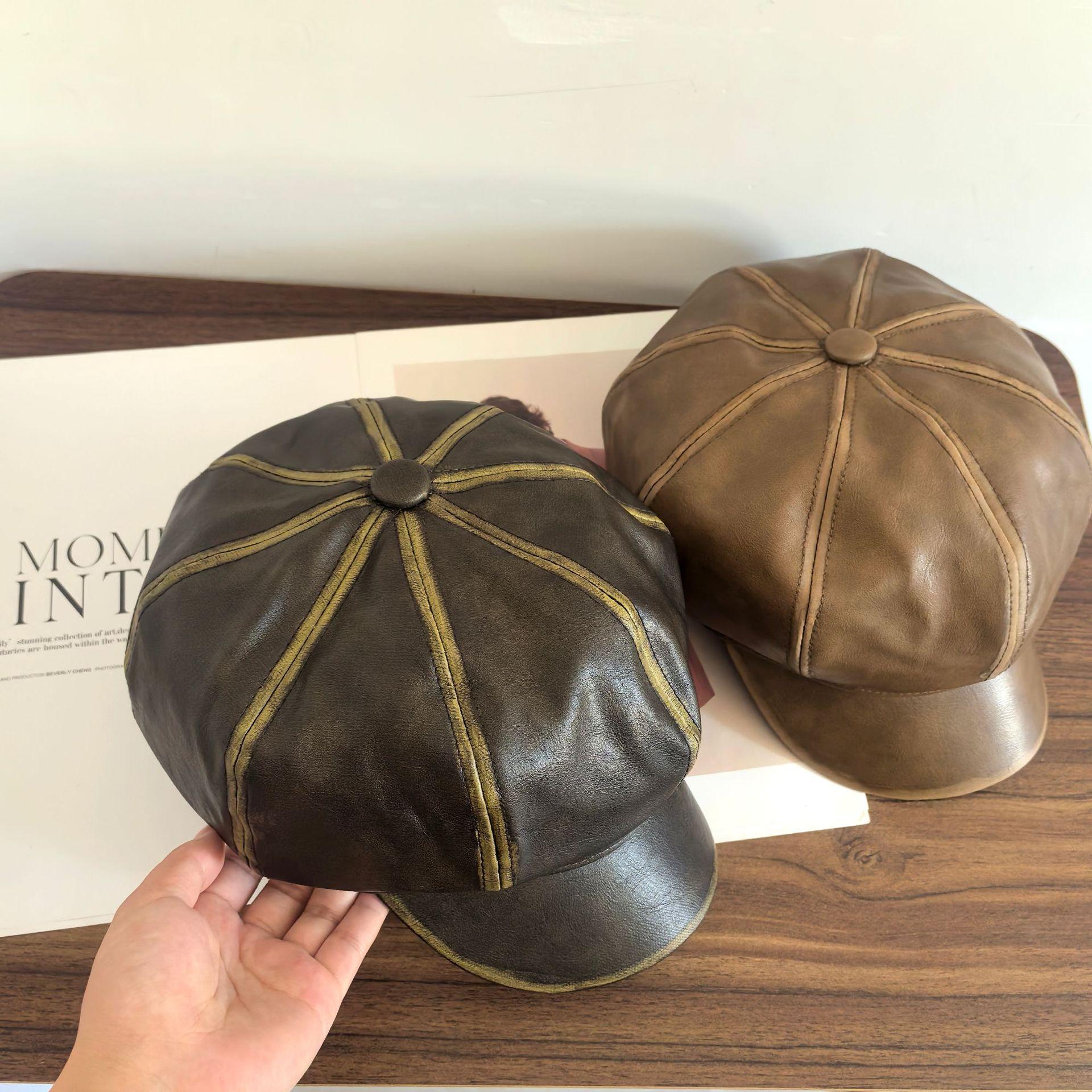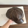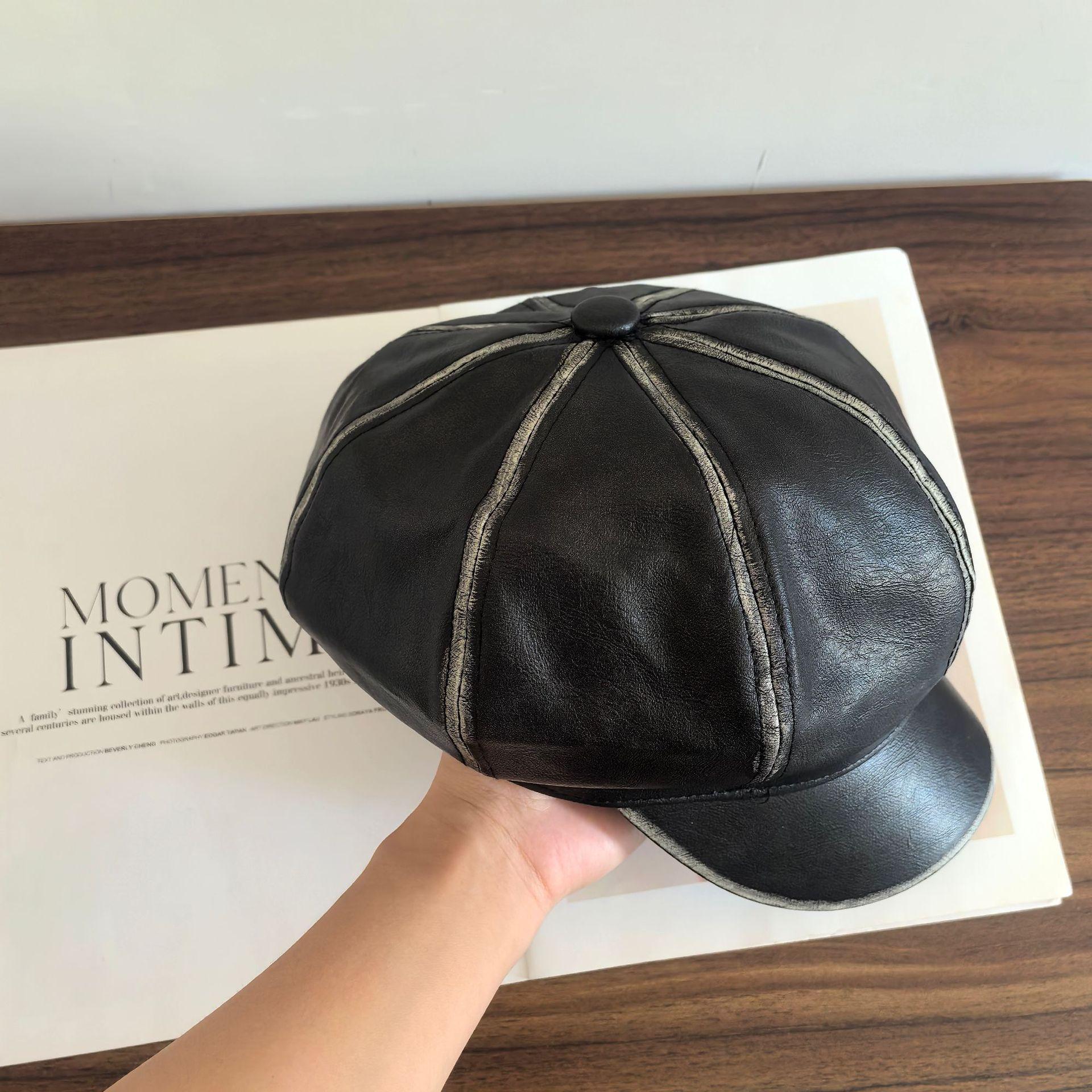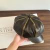 Sombrero Octogonal Nuevo Vintage de Primavera y Otoño Estilo Británico Combinable Gorra de Cuero PU que Muestra el Rostro Pequeño Sombrero de Niño de las Noticias Tendencia