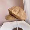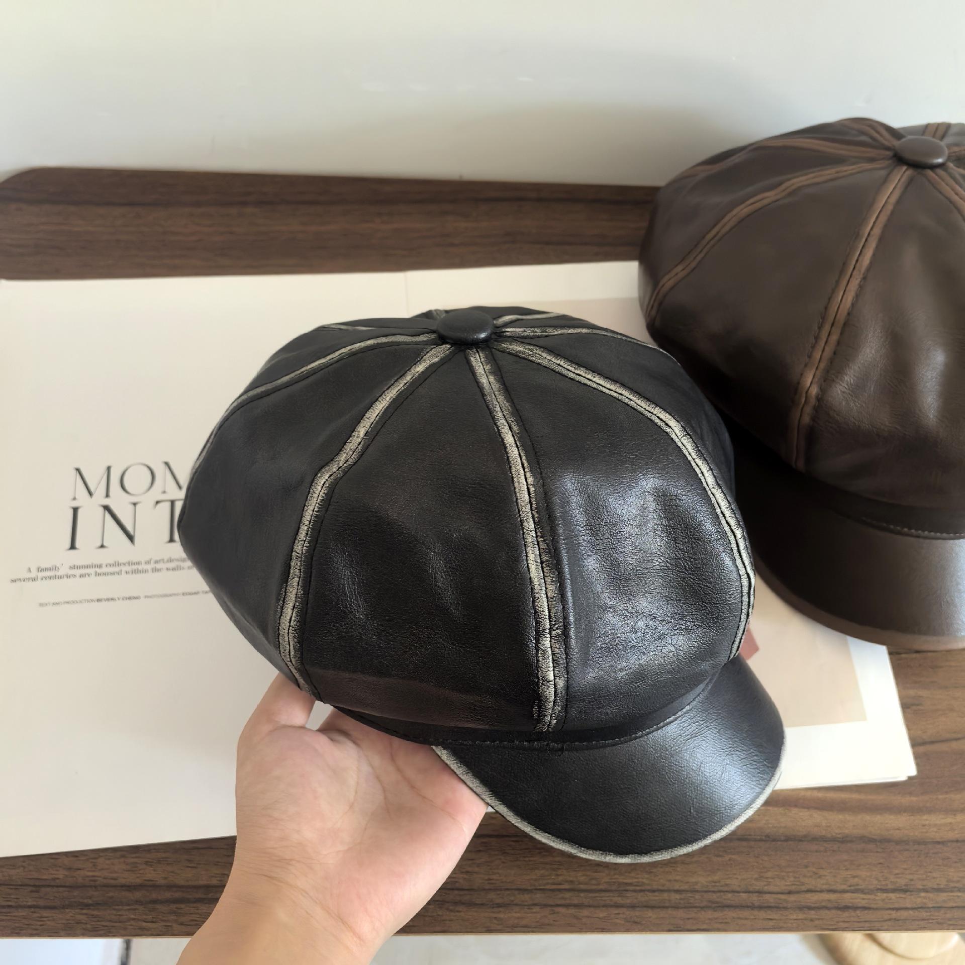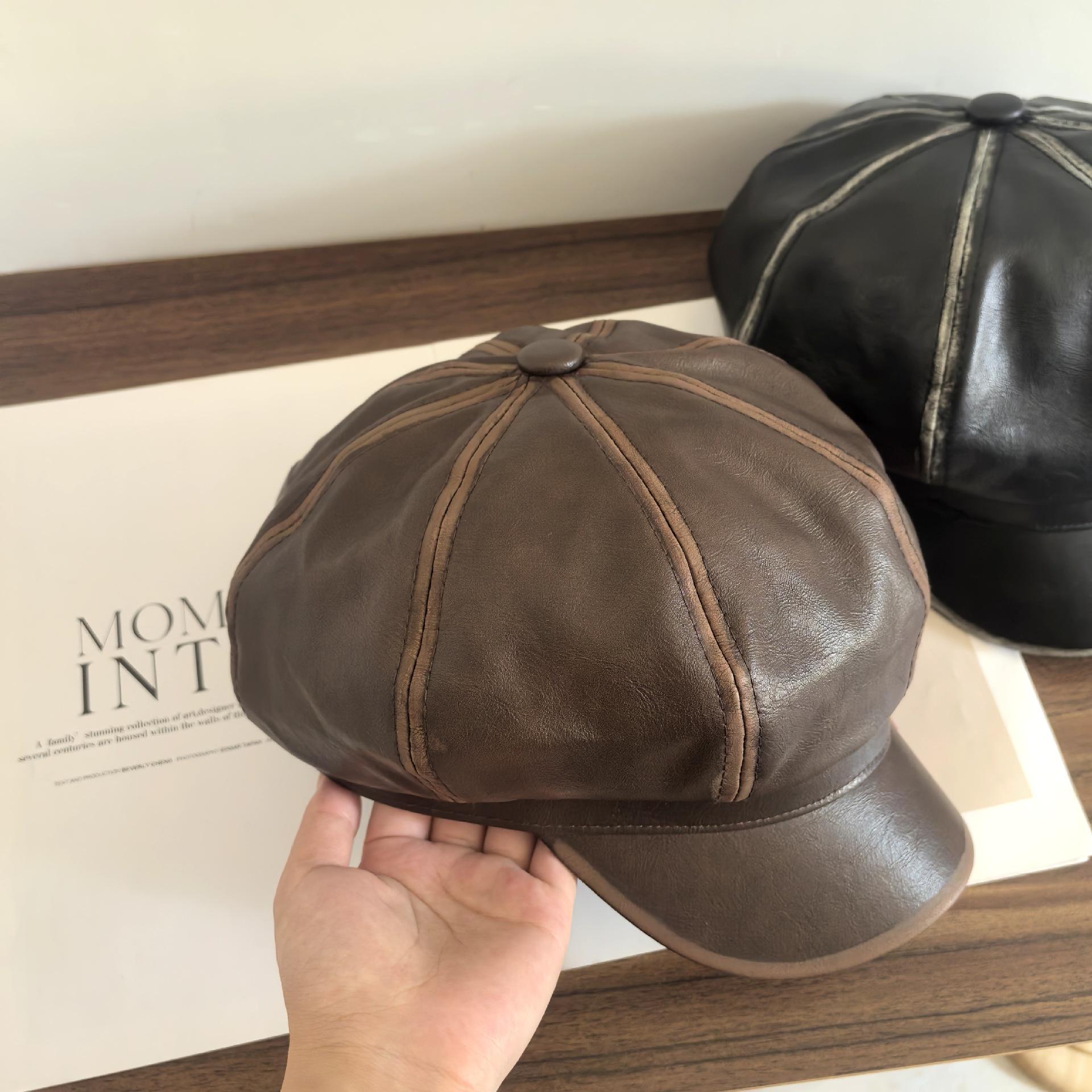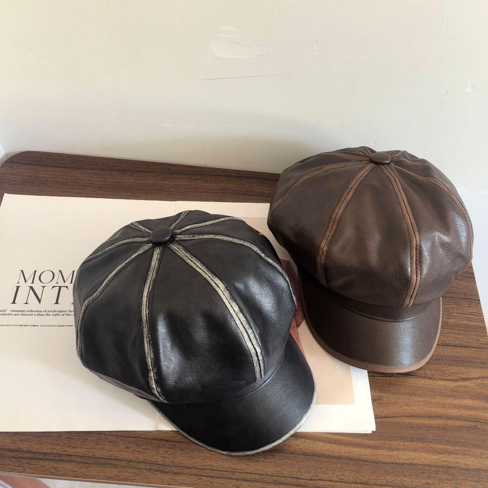 Sombrero Octogonal Nuevo Vintage de Primavera y Otoño Estilo Británico Combinable Gorra de Cuero PU que Muestra el Rostro Pequeño Sombrero de Niño de las Noticias Tendencia