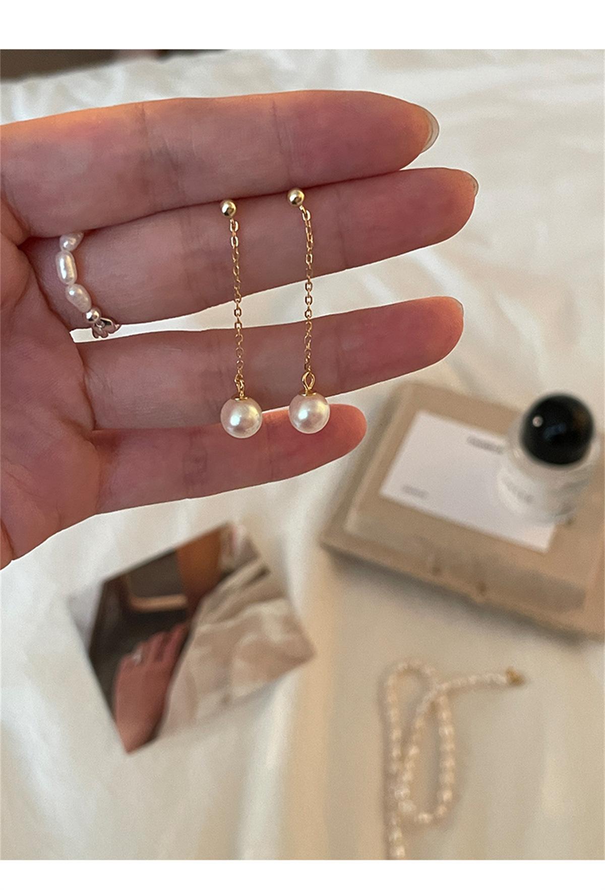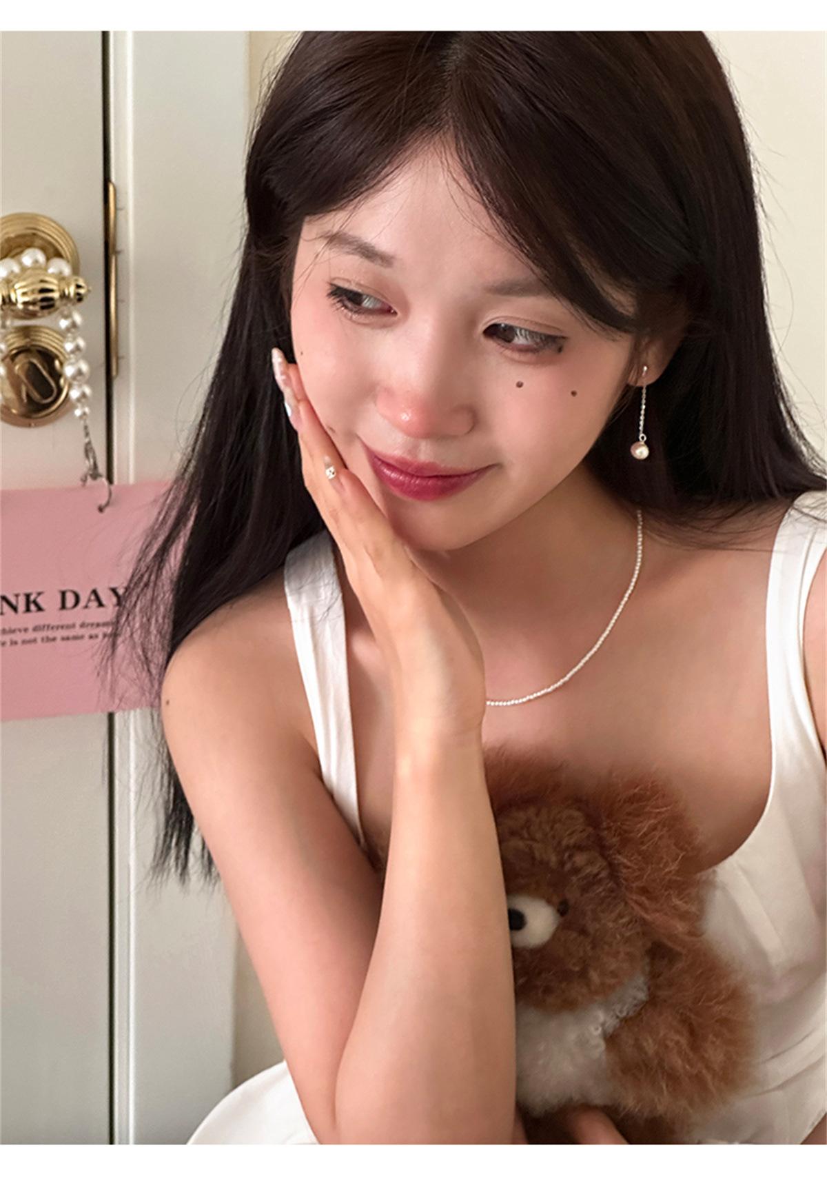Pendientes de borlas de perlas retro de estilo coreano para mujer, exquisitos, sencillos, a la moda, con broche de plata que combinan con todo, pequeños, joyería nueva.