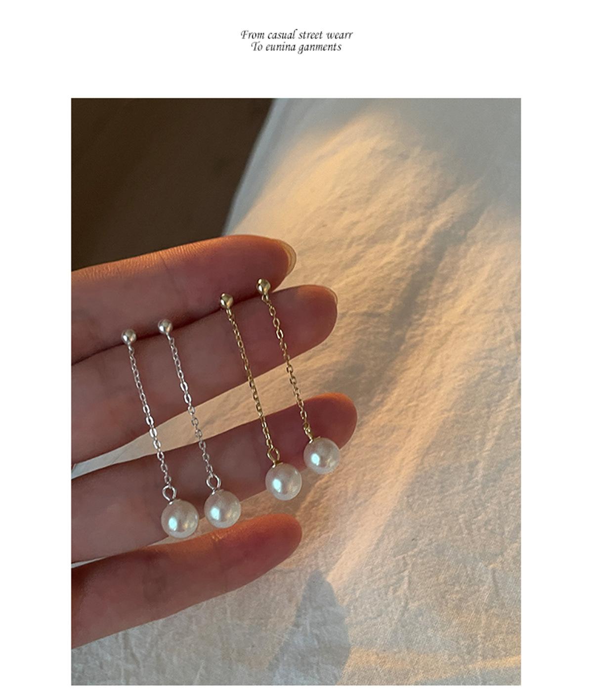 [gold] pair of long tassel pearl earrings, [silver] pair of long tassel pearl earrings