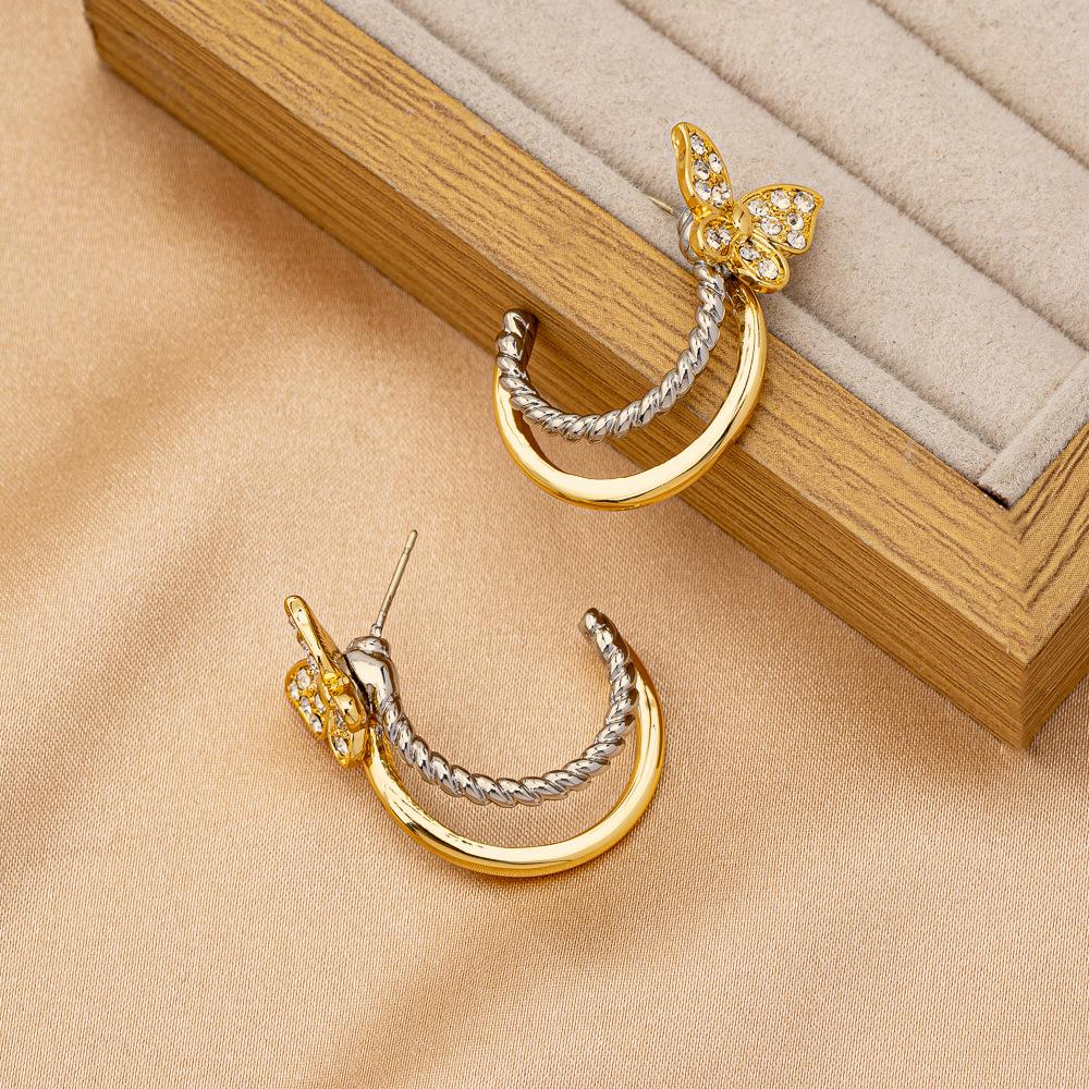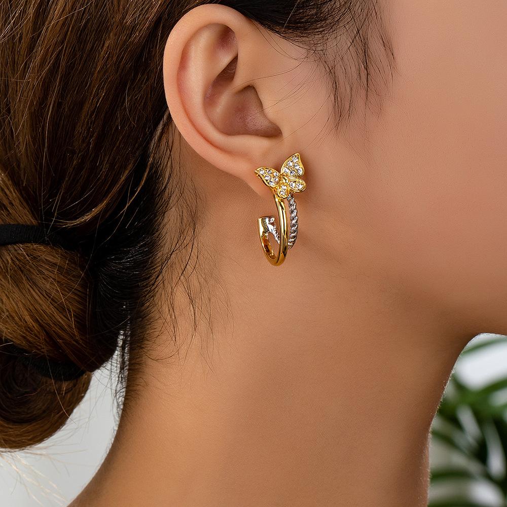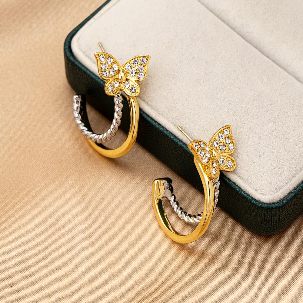 Pendientes de oro retro franceses con diseño de mariposa, venta al por mayor, con video transfronterizo europeo y americano