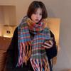 Bufanda de Cuadros Arcoíris para Mujer Invierno 2025 Nueva Versátil Gruesa Cálida Estudiante Chal Largo Bufanda Mohair