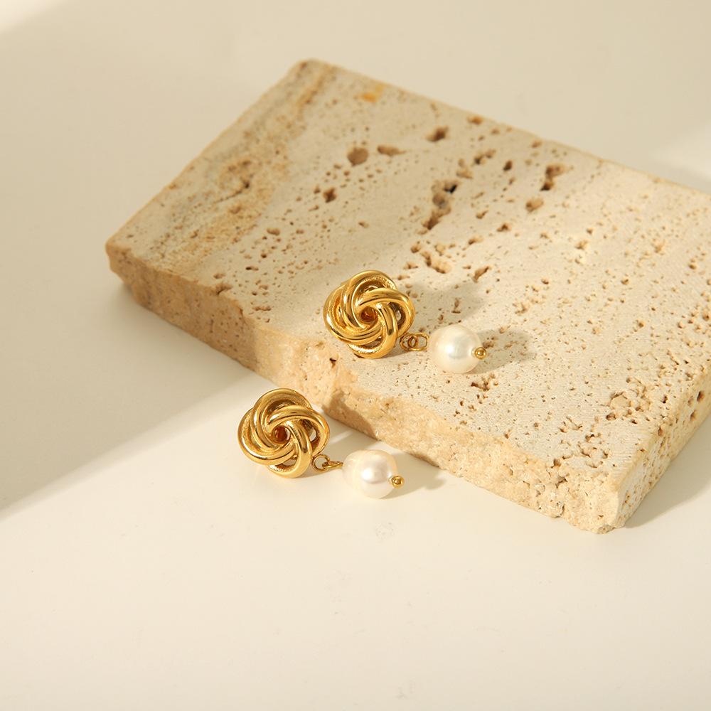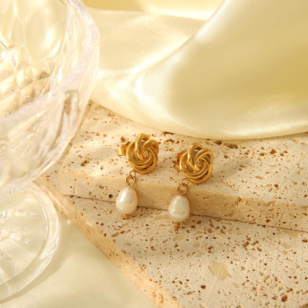 Compra Nuevos Aretes Florales Barrocos de Perlas Europeos y Americanos Aretes de Nicho en Espiral Aretes de Acero Inoxidable Joyería para Mujer al Mayoreo al por mayor en Joom.pro