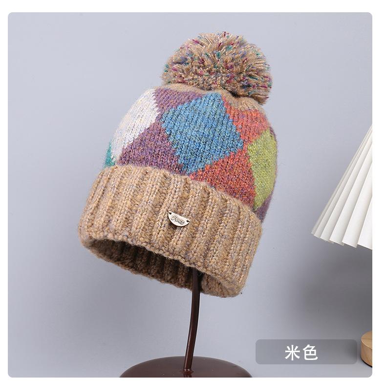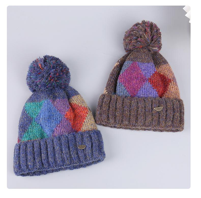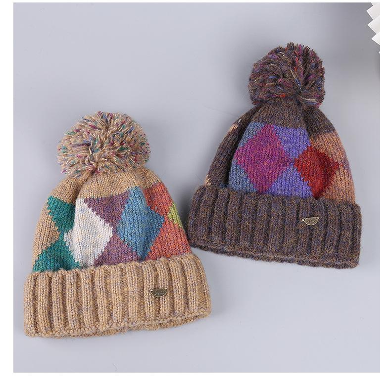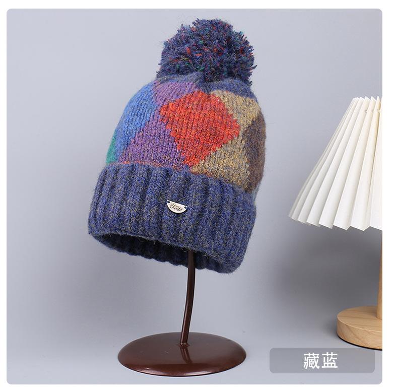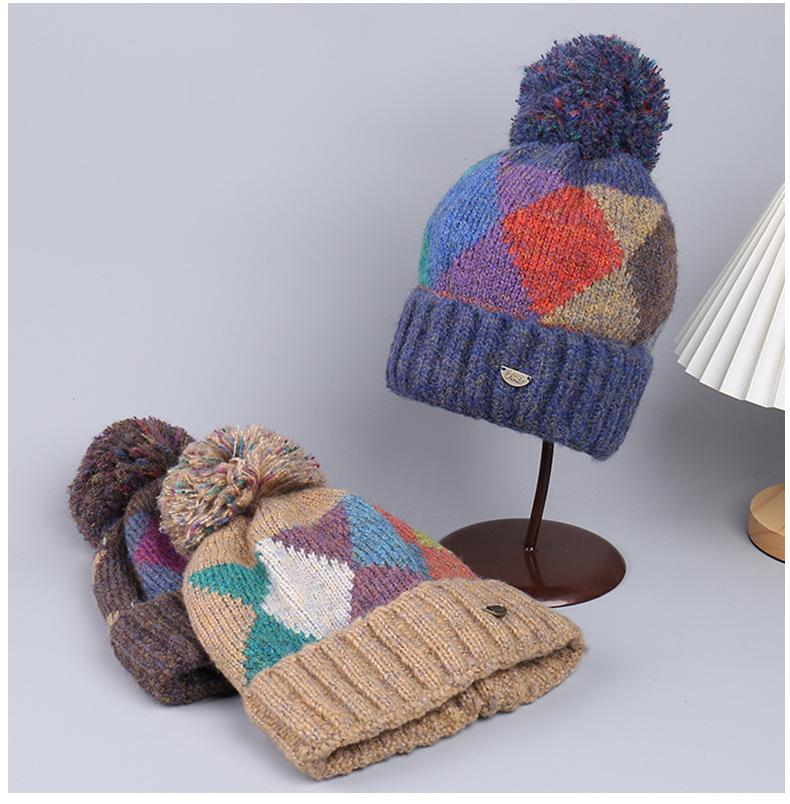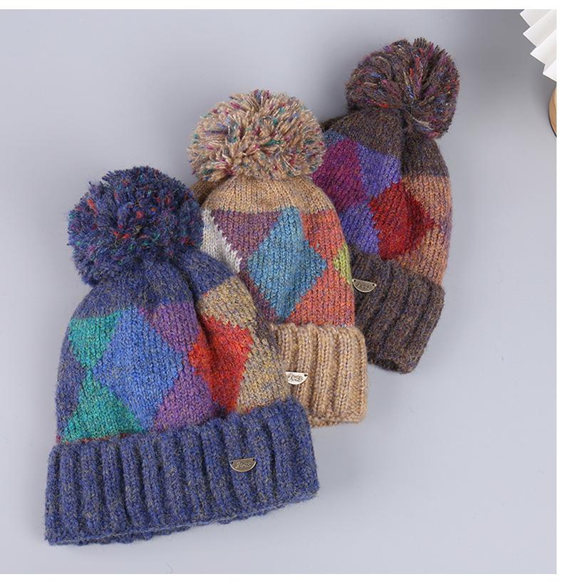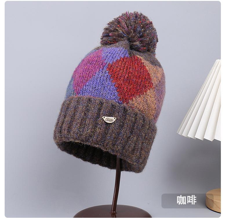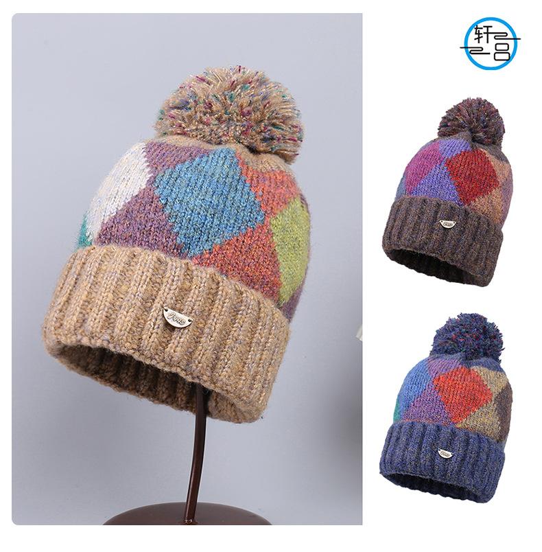 Gorro de lana de punto vintage de moda para mujer, nuevo gorro de lana de color combinado, con costuras nuevas, cálido y resistente al frío para otoño e invierno.