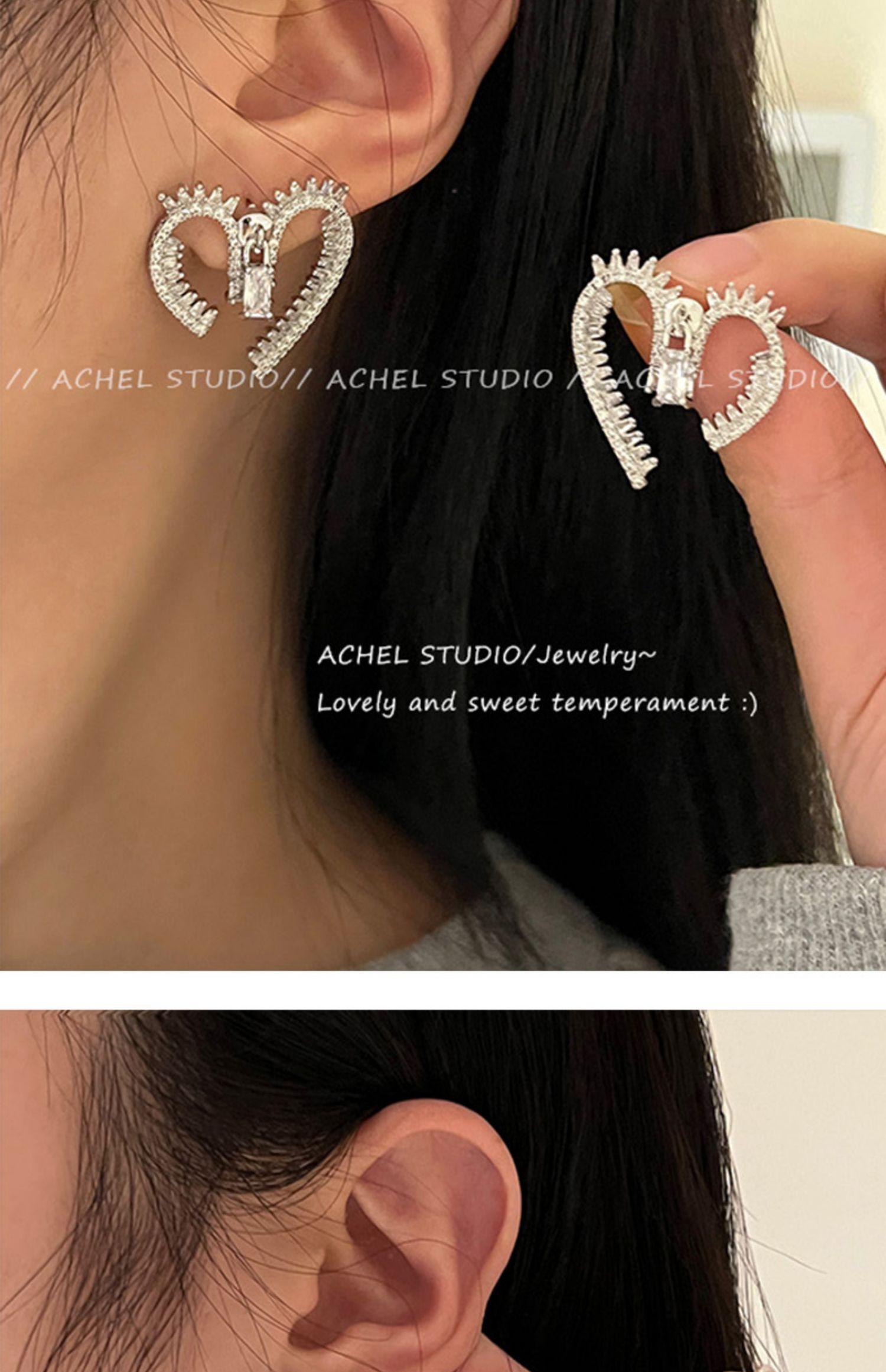 Pendientes de circonita con cremallera y diseño de nicho para mujer, con personalidad exagerada, sencillos, combinables y elegantes.