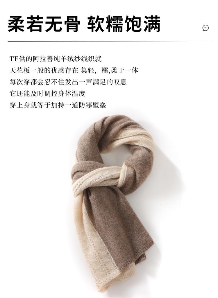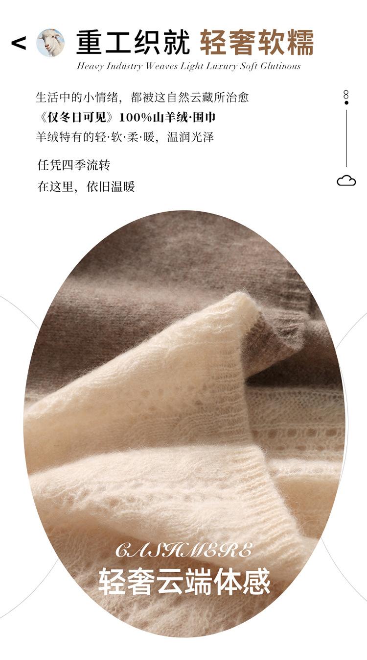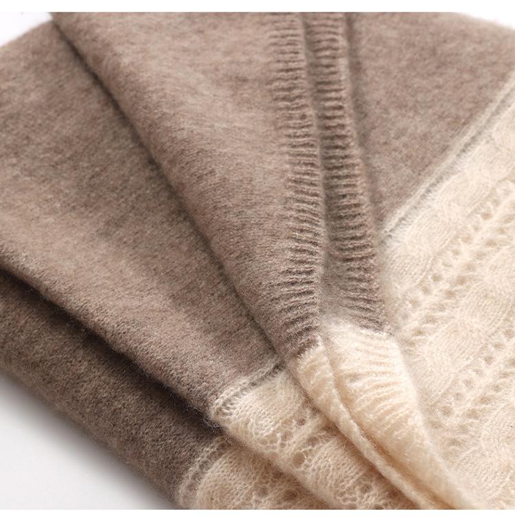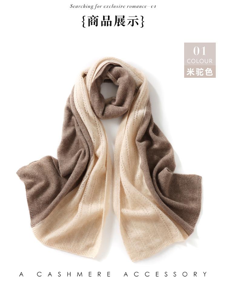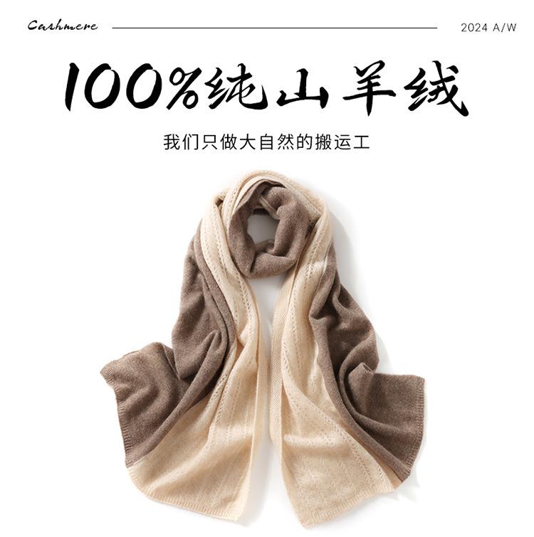 Bufanda de Cachemira Mujer 100% Cachemira Pura Otoño e Invierno Nuevo Patrón Hueco de Combinación de Colores Coreano Versátil Cálido Chal de Punto