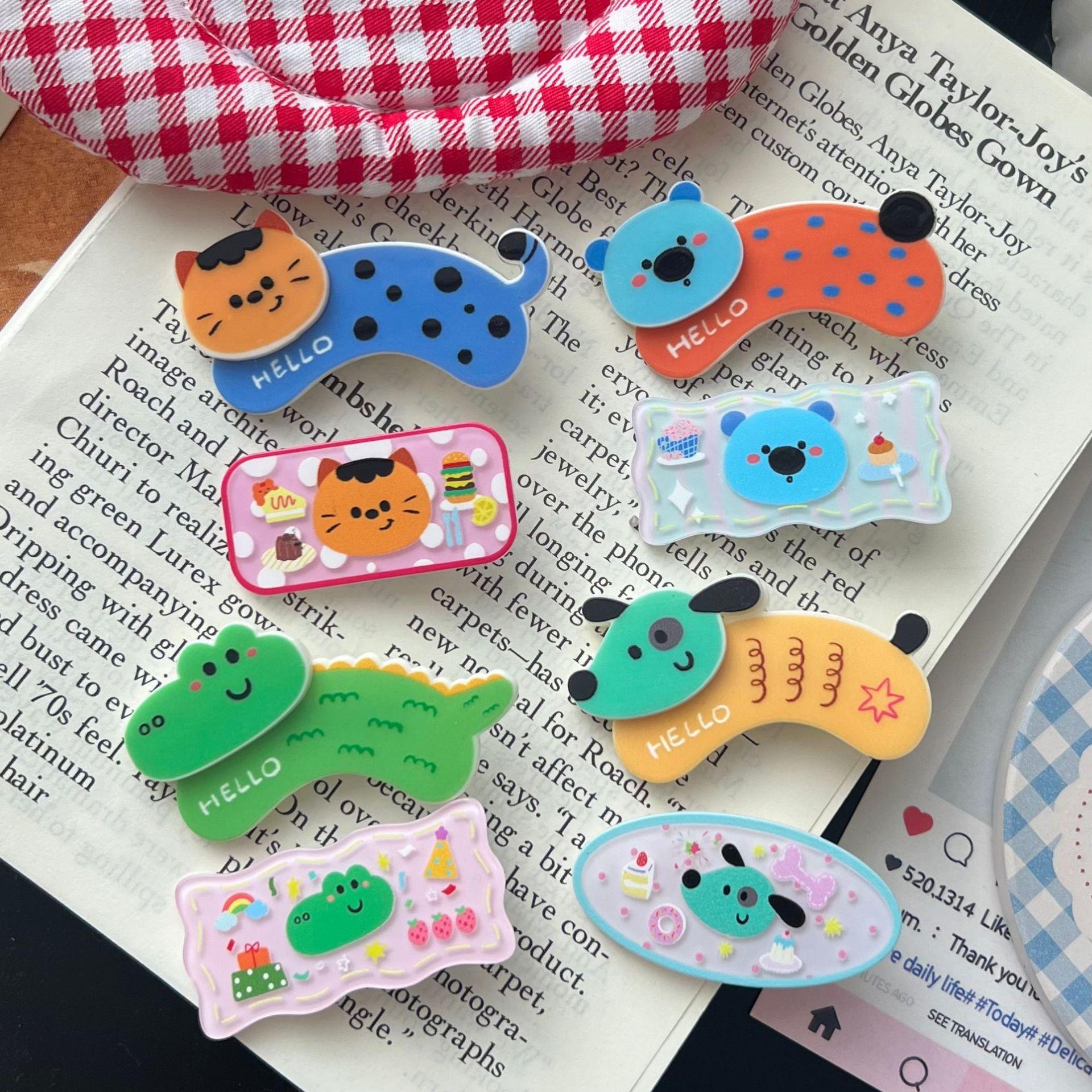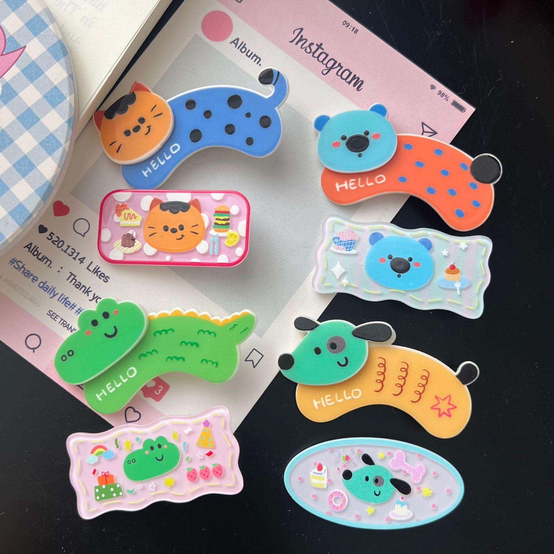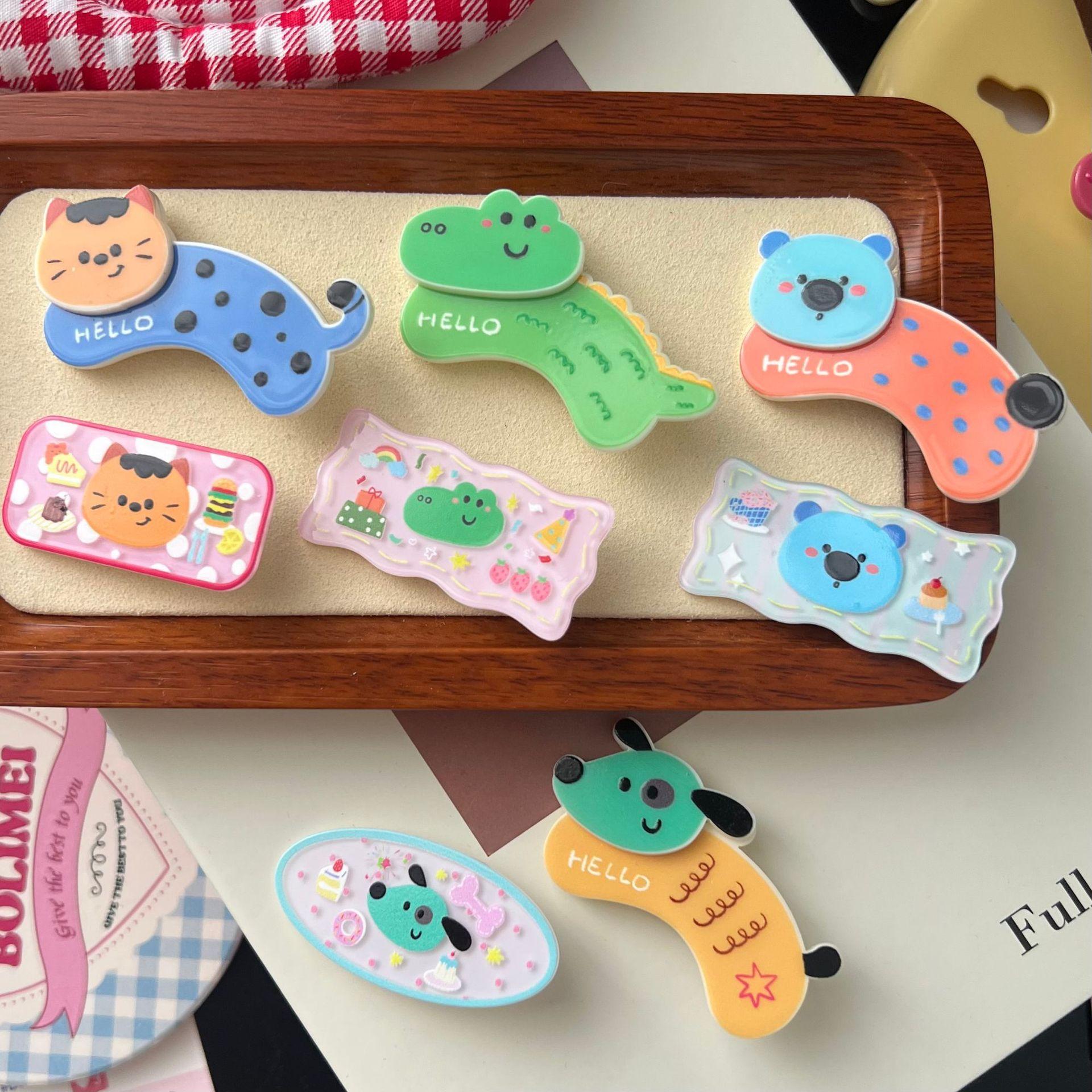 Pinza para el pelo acrílica con dibujos de animales pequeños, dulce y linda chica, con flequillo, pinza lateral, divertida horquilla para el pelo para niños, accesorios para el cabello