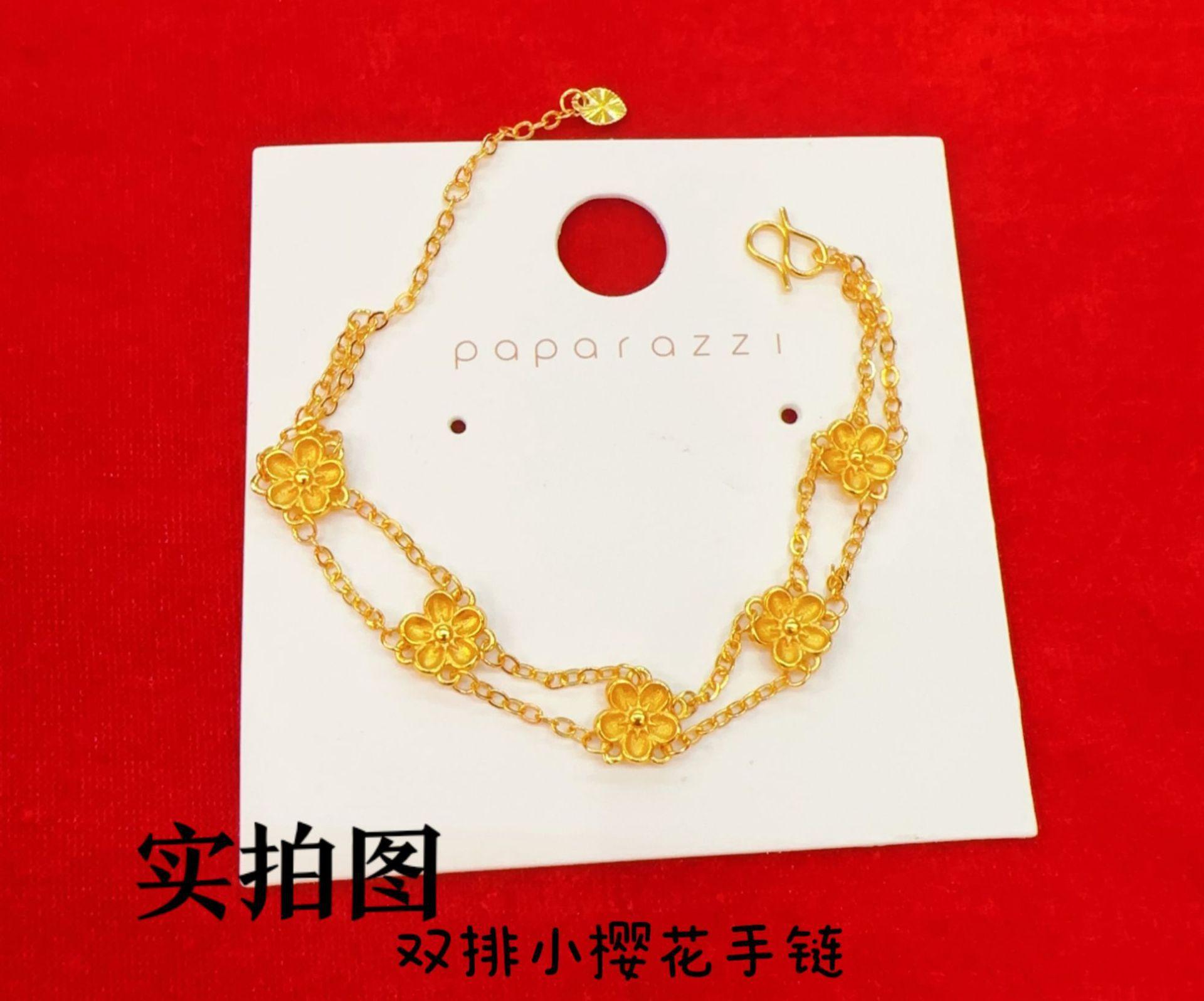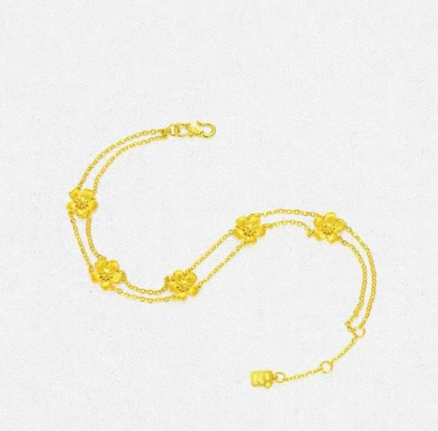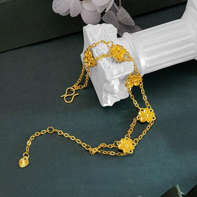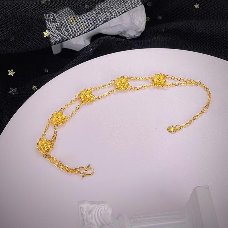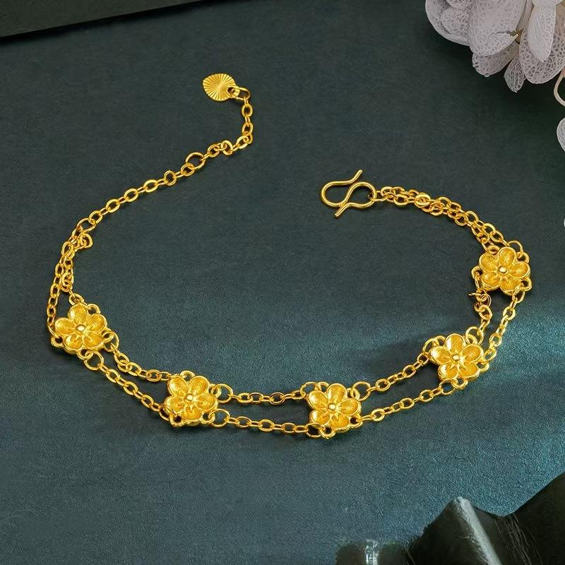 Pulsera Sikkim Color Oro Doble Fila Pequeña Flor de Cerezo para Mujer Lujo Ligero Oro Arena Vietnamita Doble Capa Pulsera de Flores Regalo para Novia