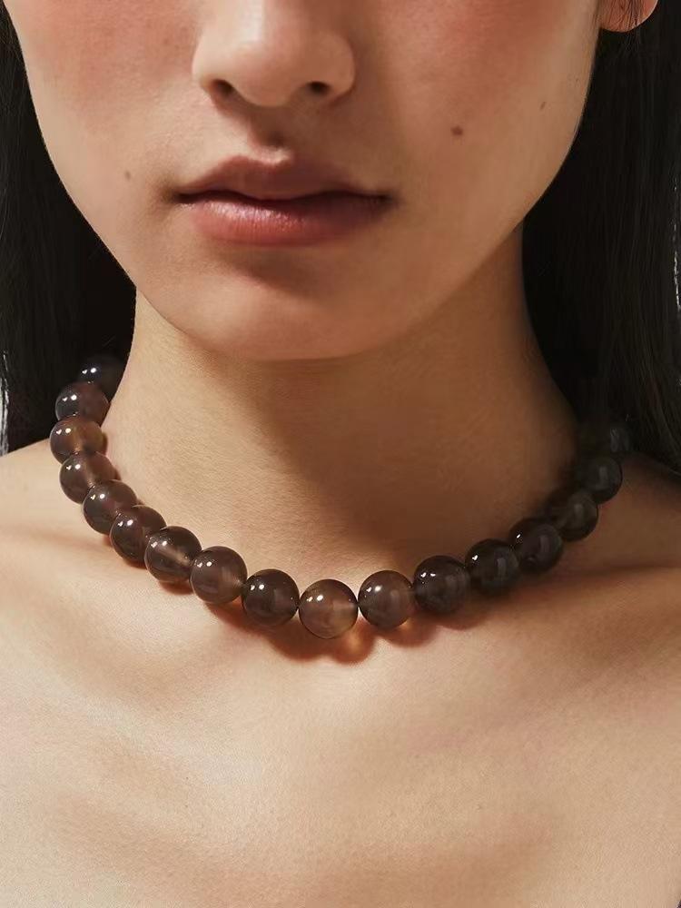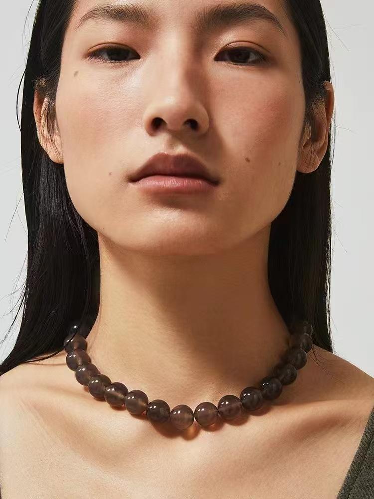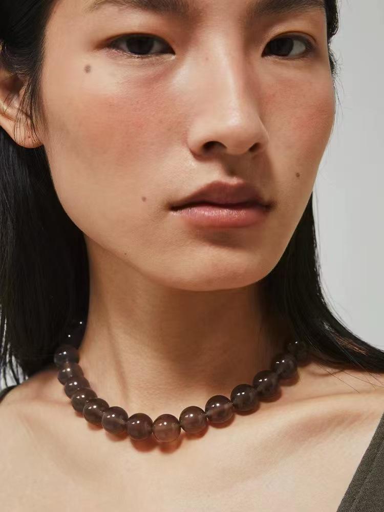 Collar nuevo 2024, estilo japonés y coreano, AKI, mismo estilo, color té, cuentas de cristal, diseño de hebilla OT de nicho, cadena de clavícula con sentido avanzado.