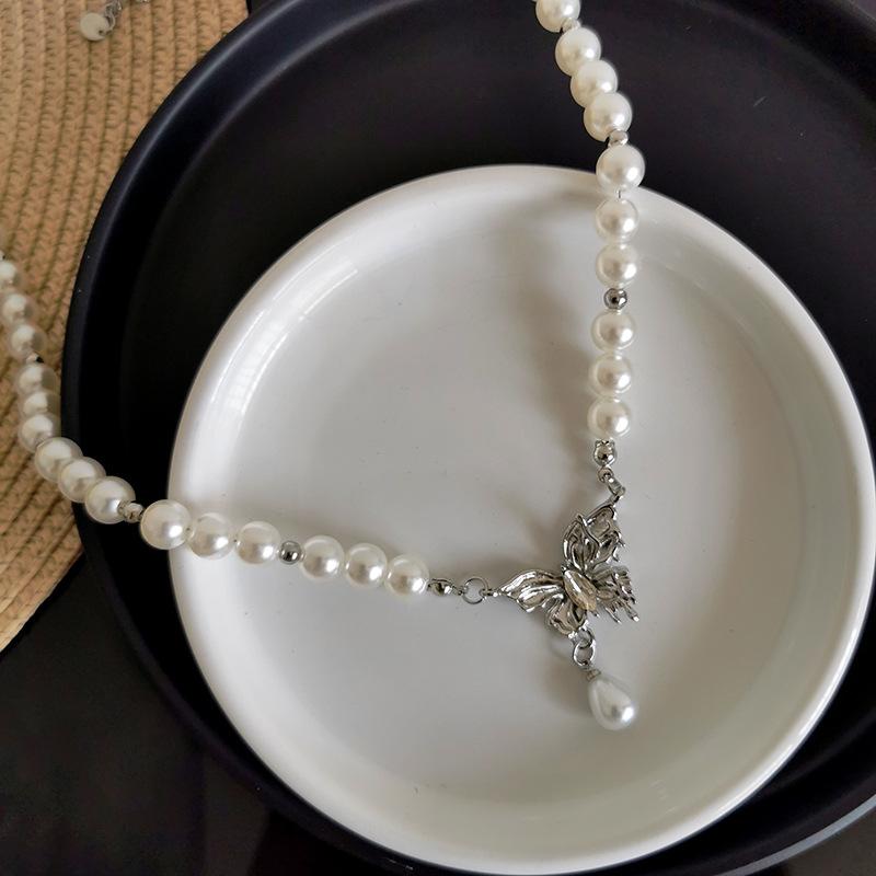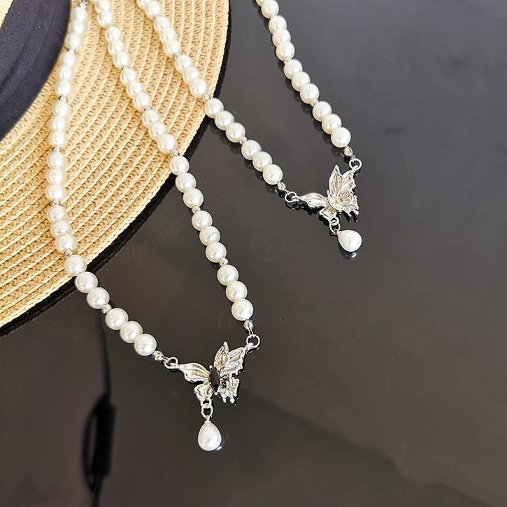 Collar con colgante de mariposa y borlas de perlas para mujer, gargantilla de cadena de clavícula, ligero, de lujo, de alta gama, nuevo estilo 2024