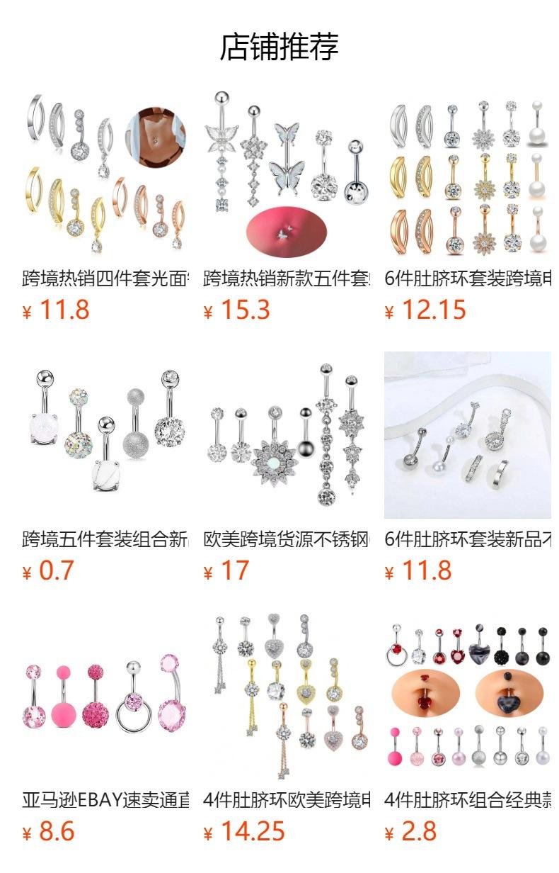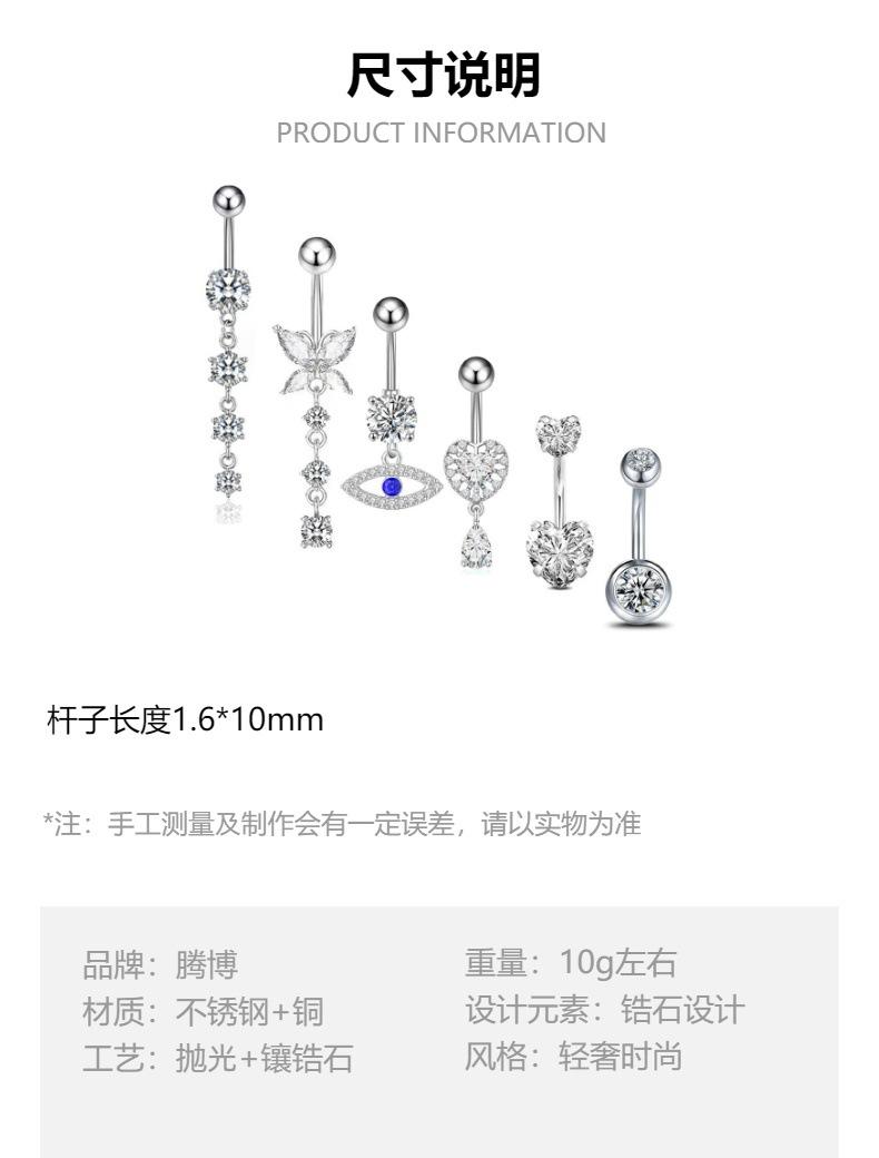 Juego de 6 piercings para el ombligo con diseño de mariposa, gotas de agua y circonitas, para piercing en el ombligo, venta al por mayor transfronteriza en Amazon.
