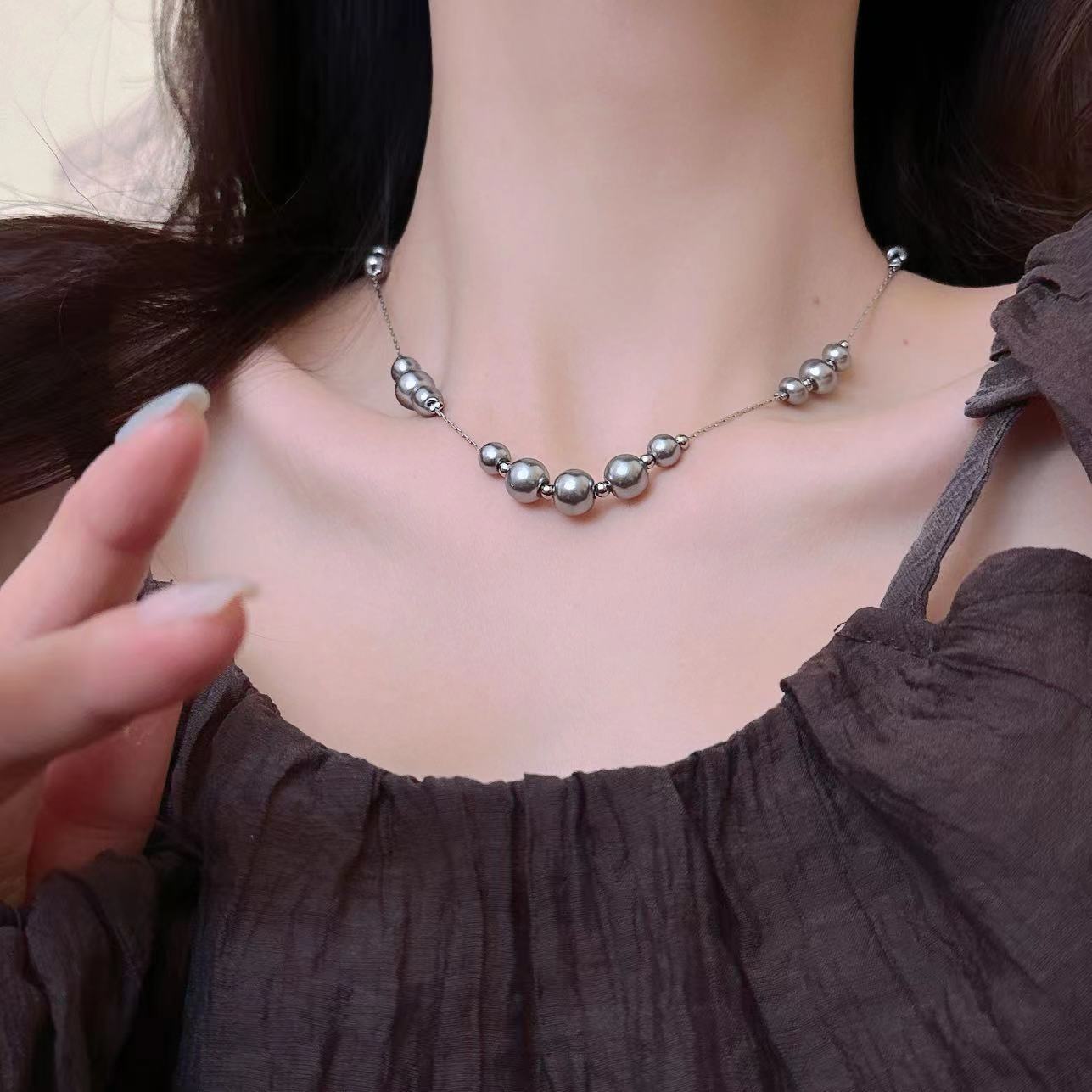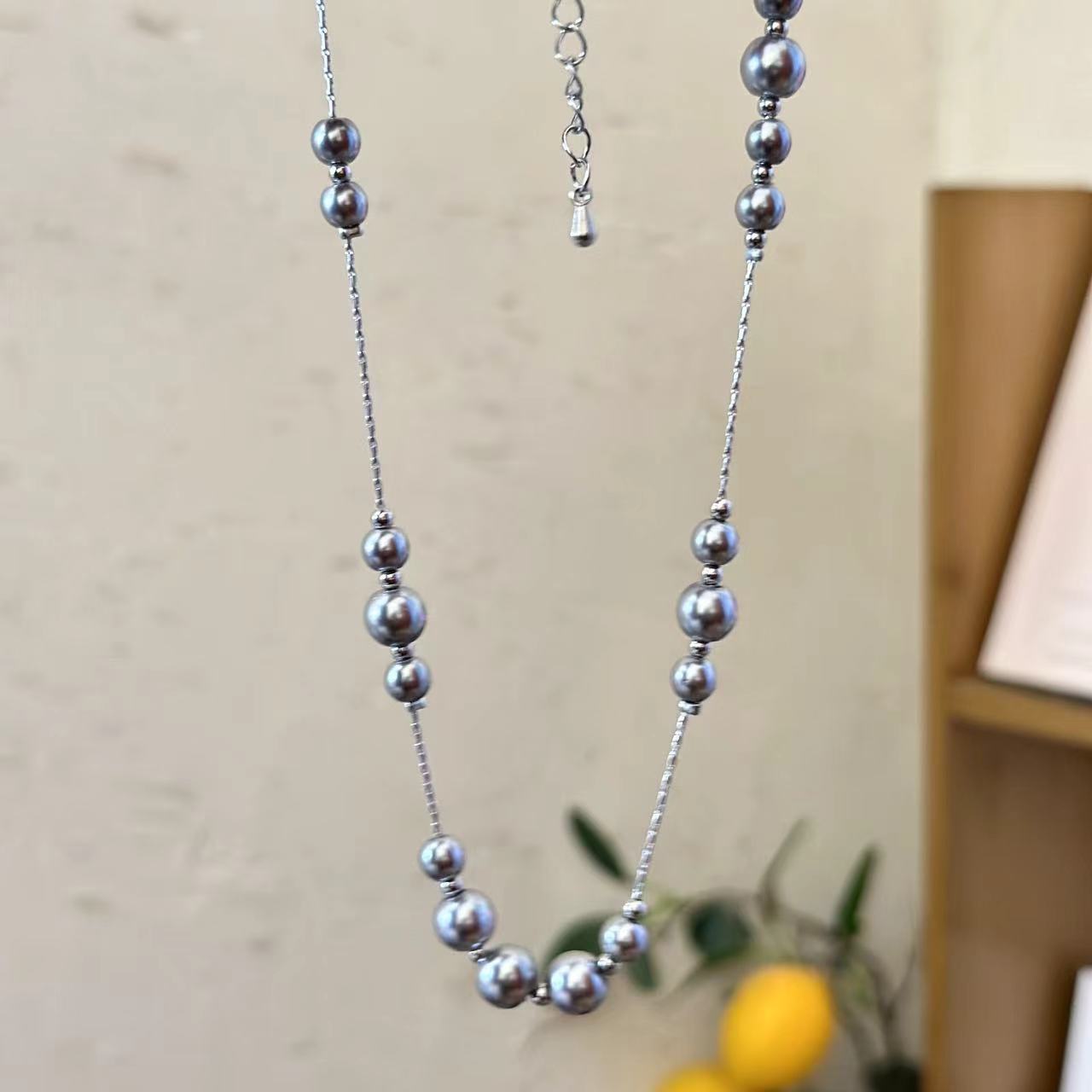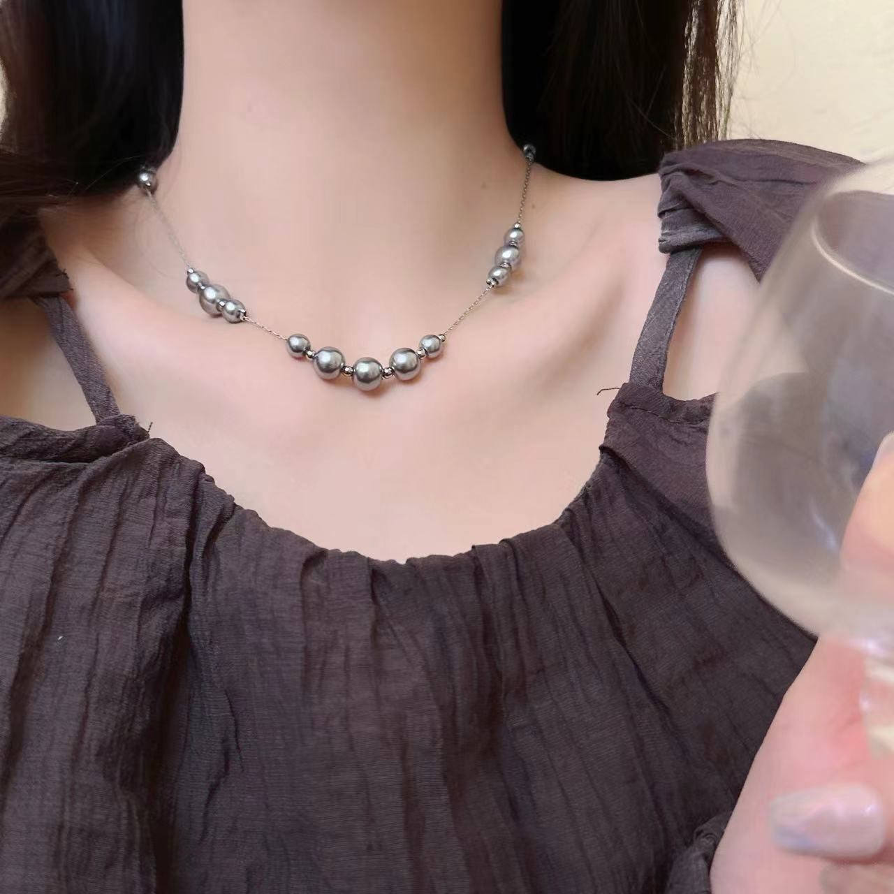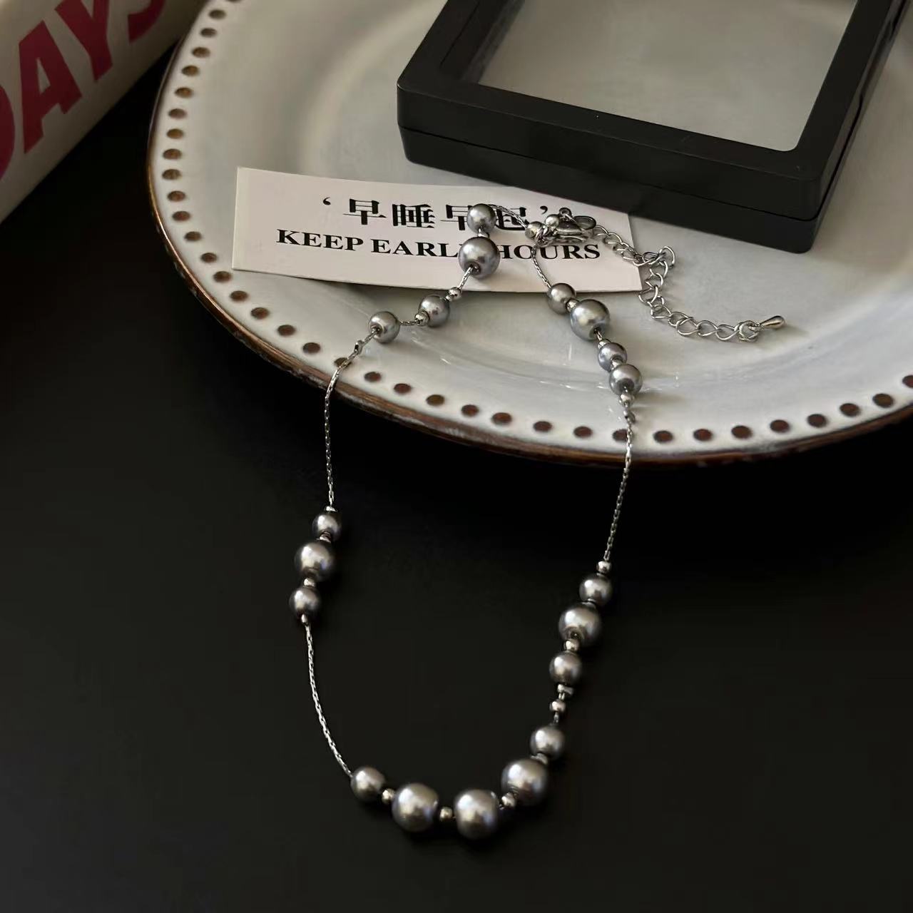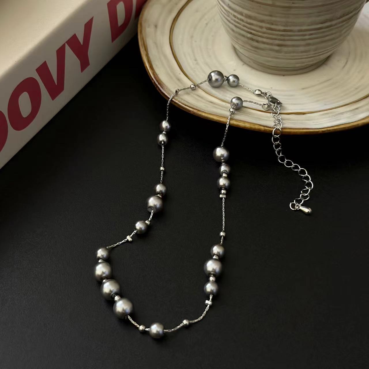 Nueva cadena de cuello de perla gris de moda para mujer, de nicho, de alta gama, sencilla, combinable con todo, cadena de suéter de uso diario, tendencia