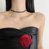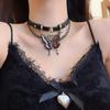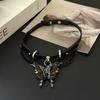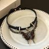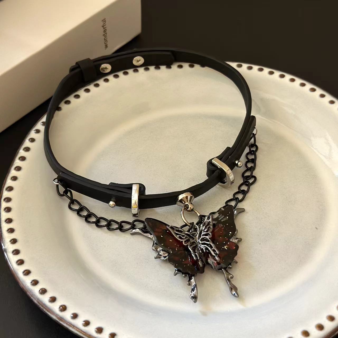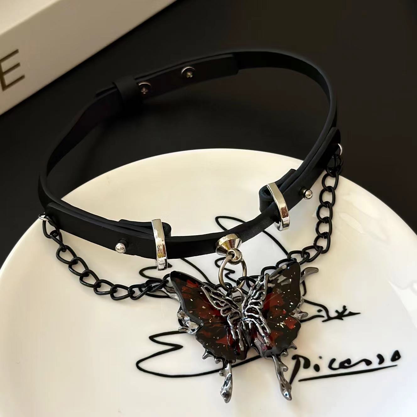 Gargantilla de cuero con mariposa roja estilo Spice Girl de Diablo Punk, estilo nicho femenino, con borlas exageradas y correa para el cuello, accesorios.