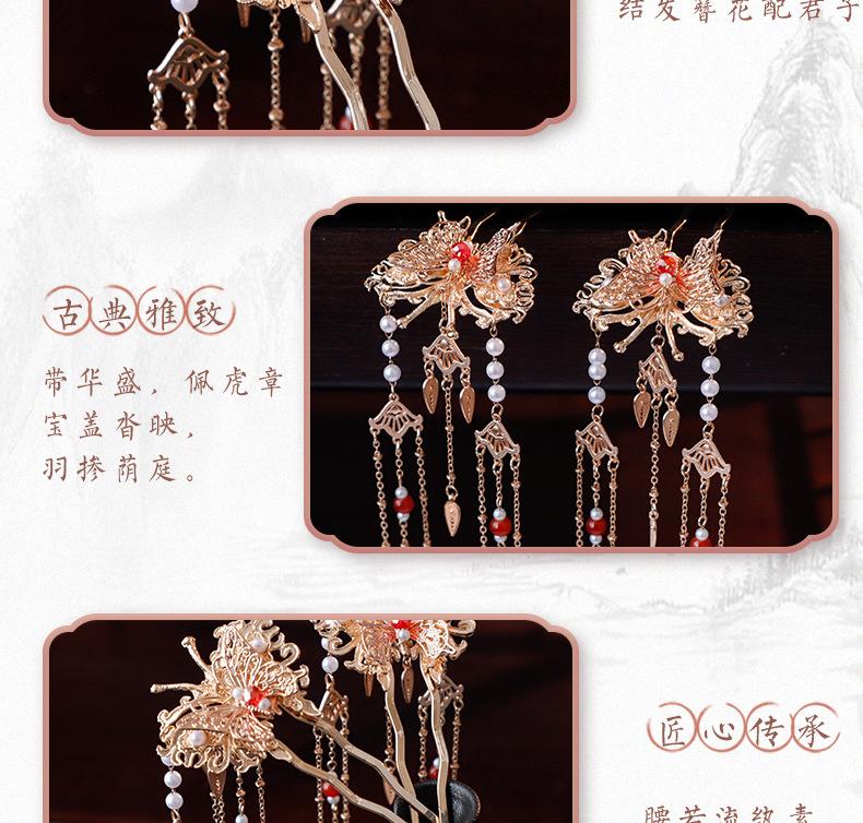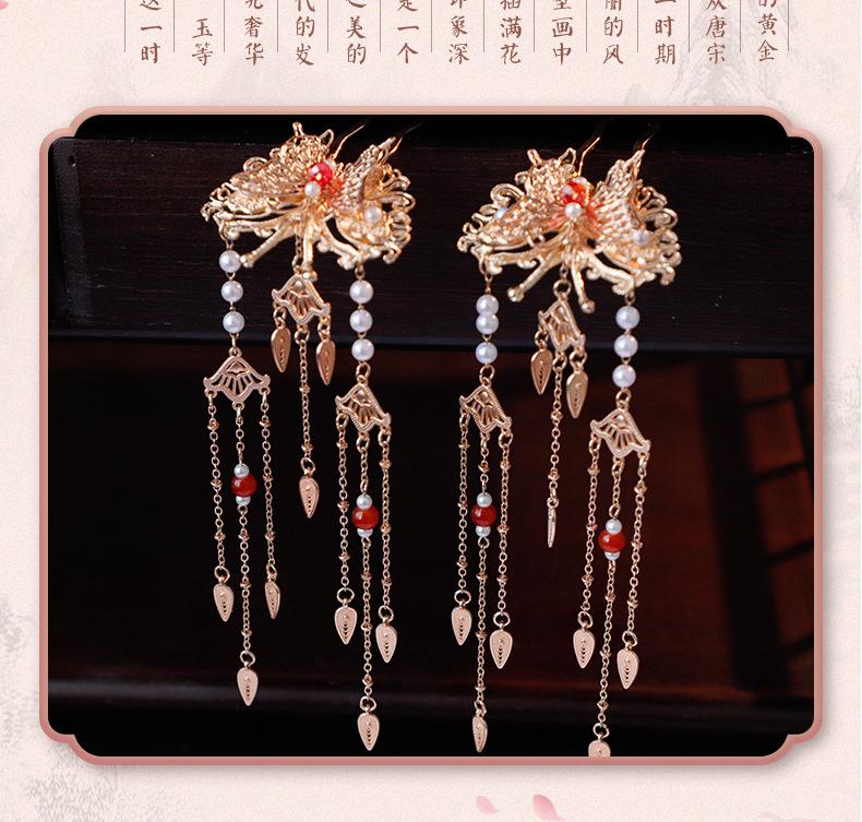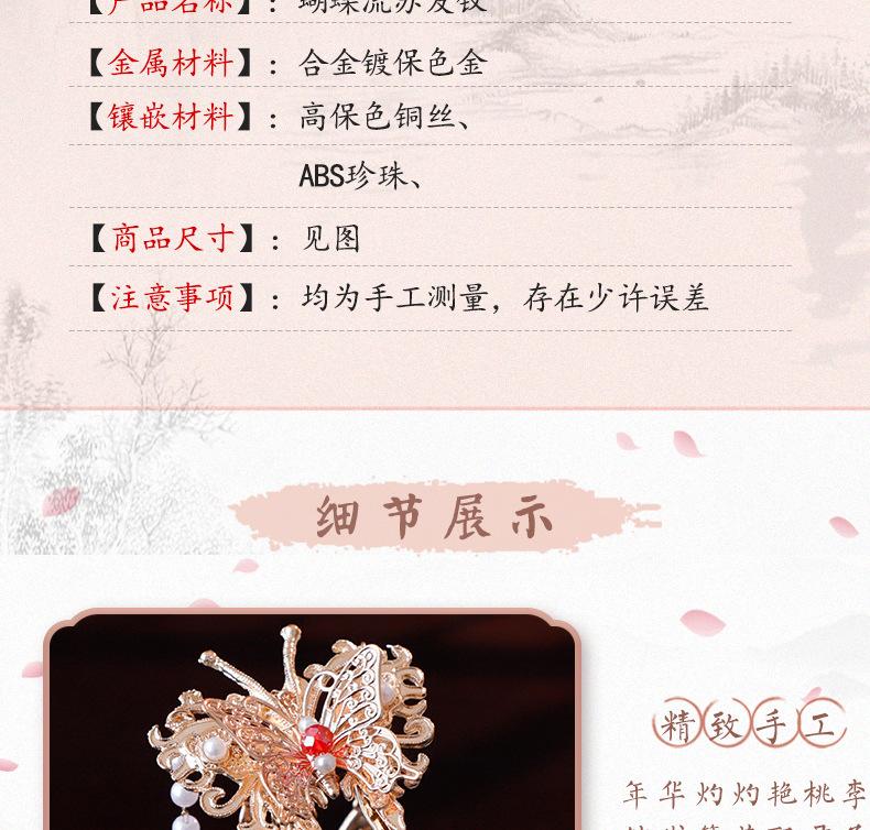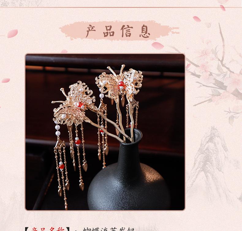Horquilla de Lentejuelas con Borlas Estilo Tang Lujosa Horquilla de Mariposa con Filigrana de Imitación Accesorio para el Cabello Hanfu Adorno para el Cabello Estilo Dinámico de Lujo Ligero