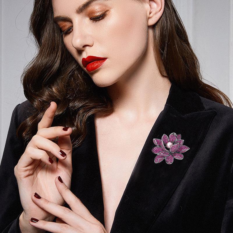 Broche de loto Guofeng, elegante y rico ramillete de flores, nuevo broche de moda para traje, abrigo, accesorios al por mayor