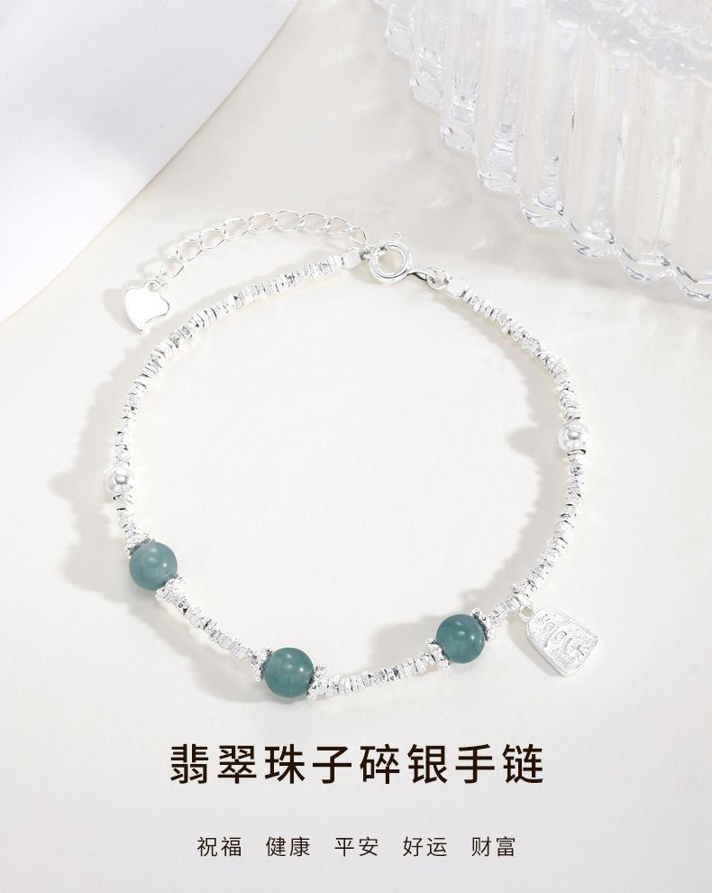 Compra Pulsera de plata rota con cuentas de jade para mujer, plata de ley S925, moda nacional, nuevo nicho chino, exquisita pulsera de paz y alegría, venta al por mayor al por mayor en Joom.pro