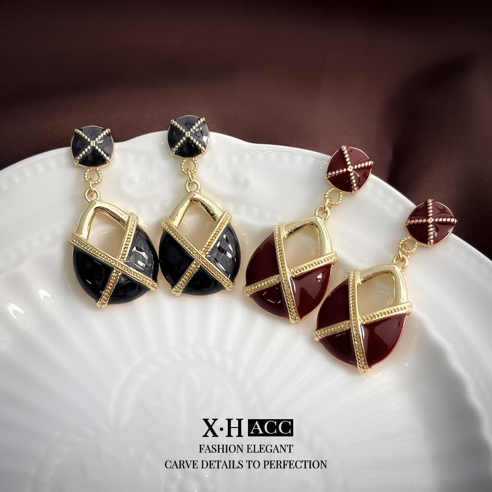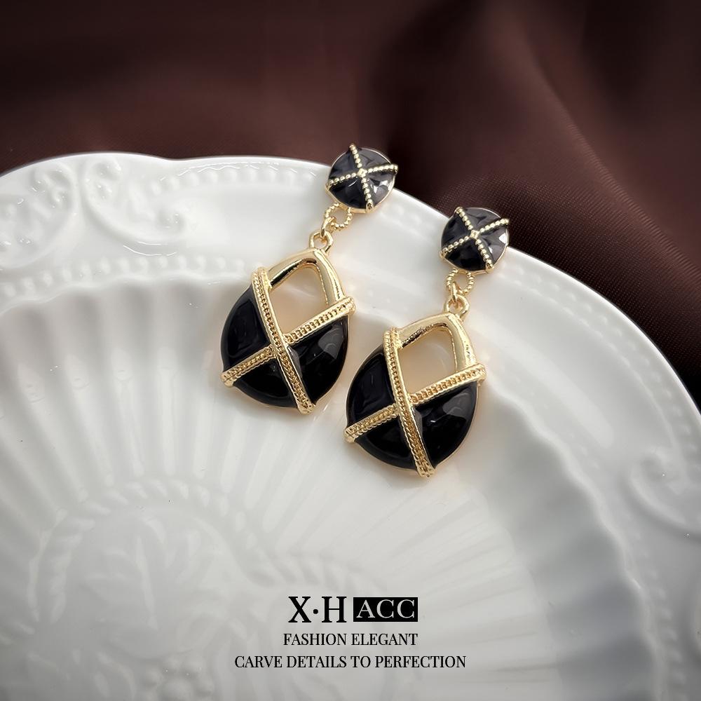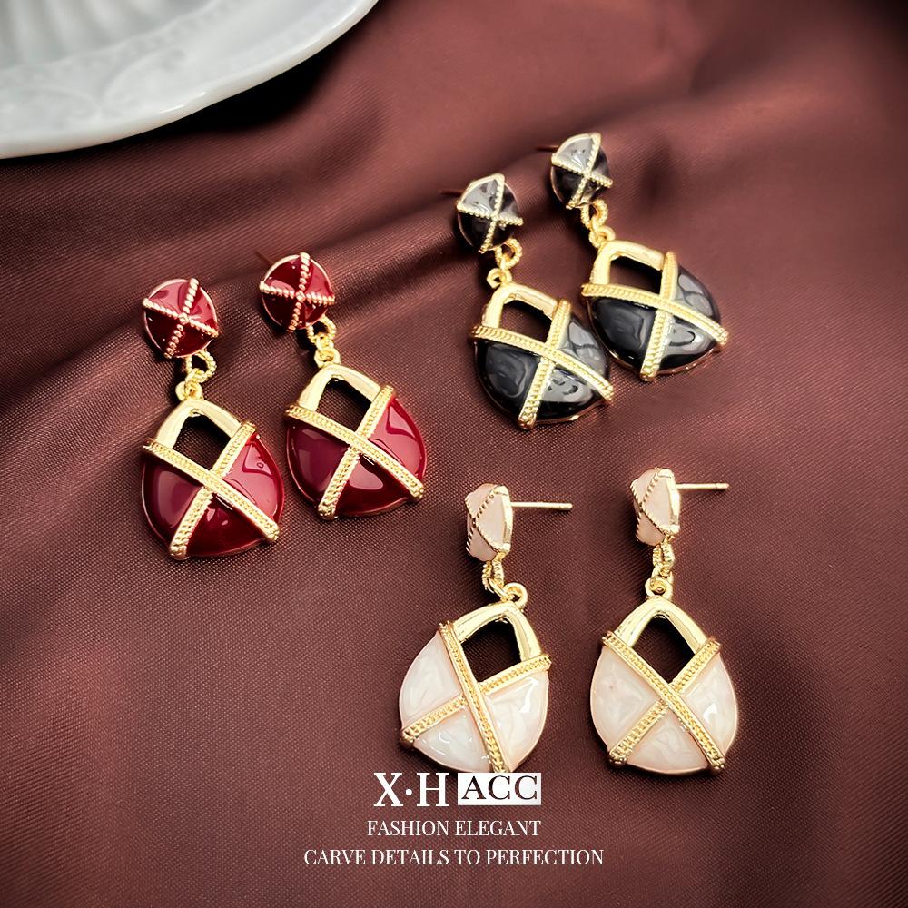 Compra Pendientes geométricos de gota de aceite de estilo cortesano francés vintage de la época media antigua, pendientes retro de moda con personalidad de gran sentido al por mayor en Joom.pro