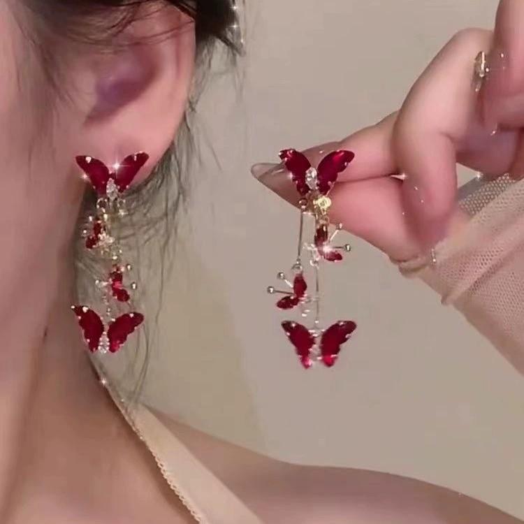 Super fairy butterfly zircon earrings-red
