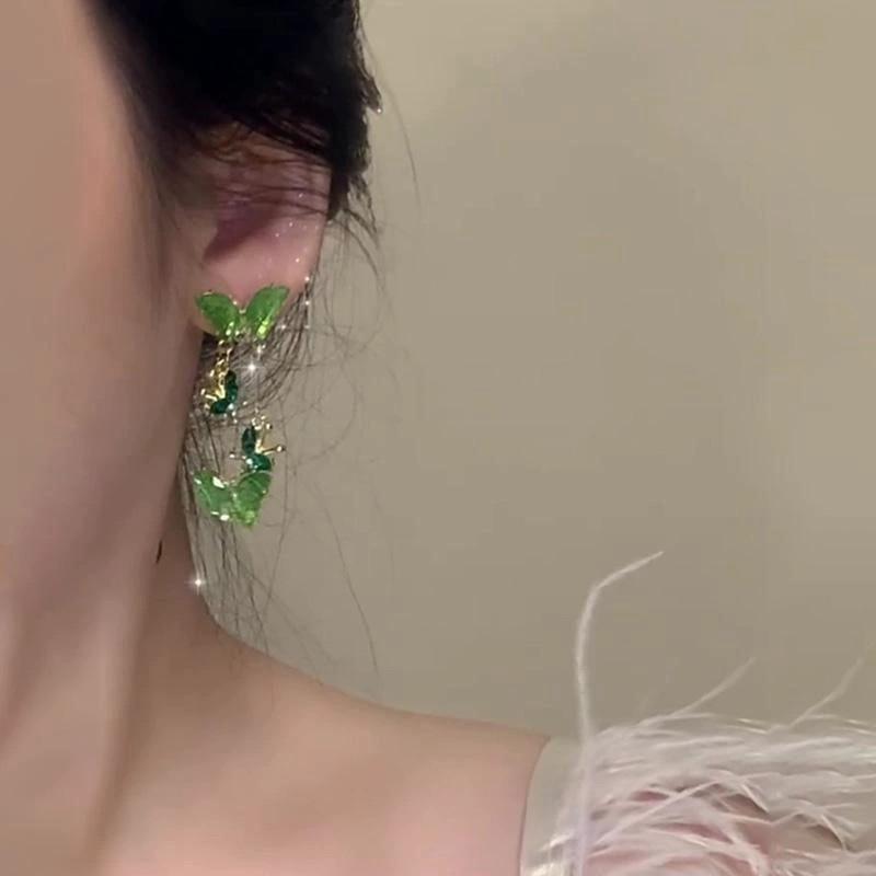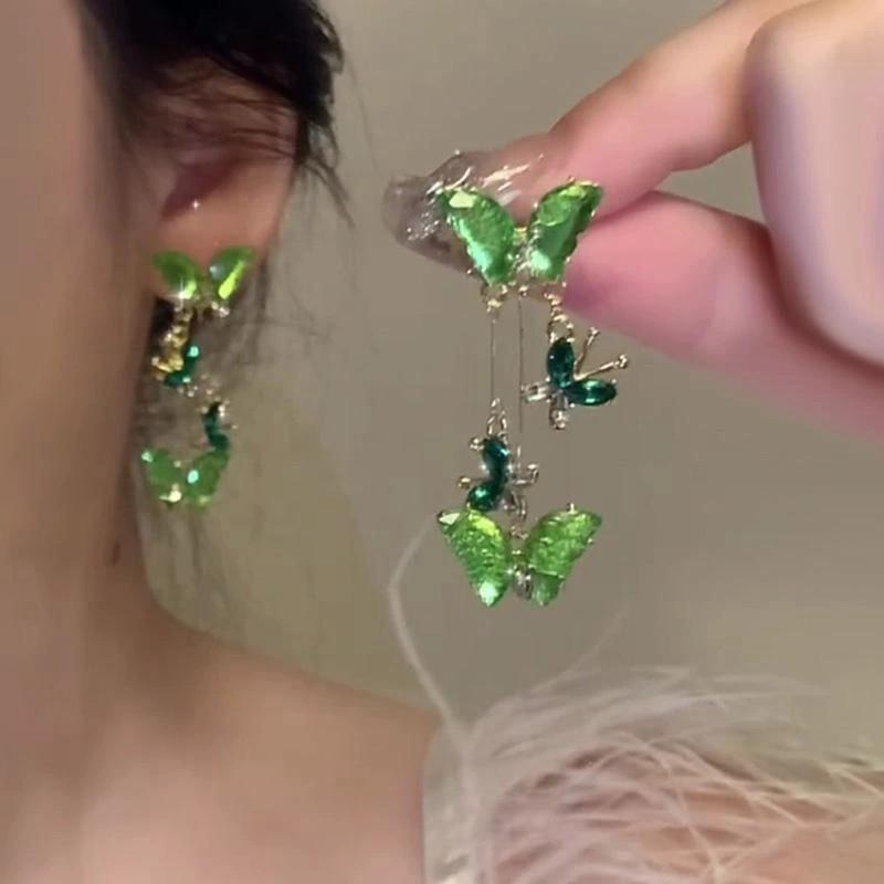 Pendientes largos de mariposa verde con diseño de bosque, nuevo estilo, ligeros, lujosos y versátiles de alta gama para mujer.