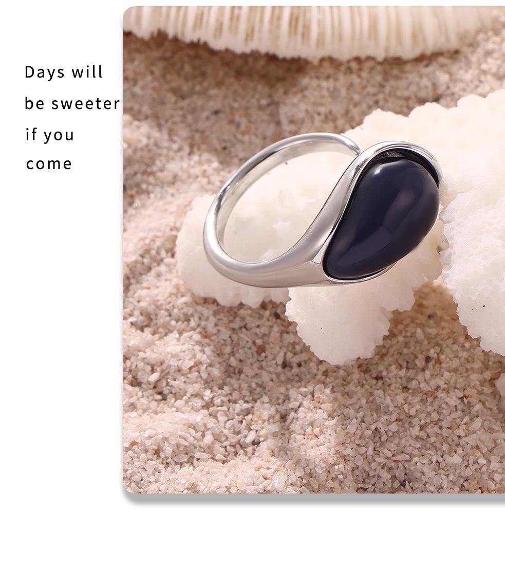 Anillo Maillard con diseño de gota de resina de pino azul, oro azul y acero de titanio de Europa y Estados Unidos, nuevo y elegante, para mujer.