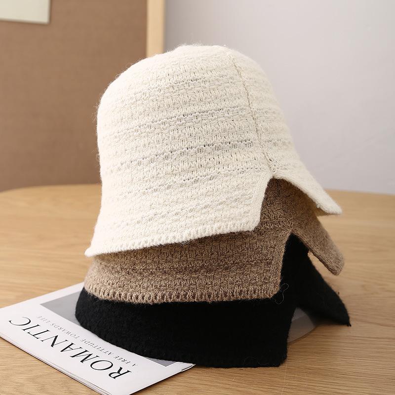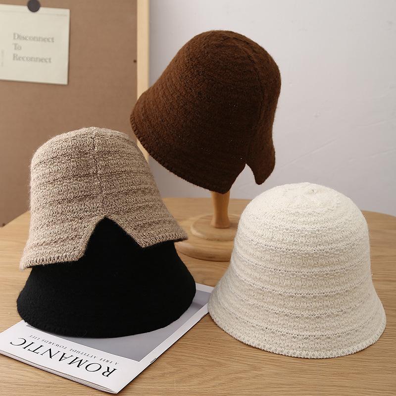 2024 Nuevo Otoño e Invierno Estilo Coreano Abertura Trasera Simple Moda Pequeño Sombrero de Pescador de Punto Fresco