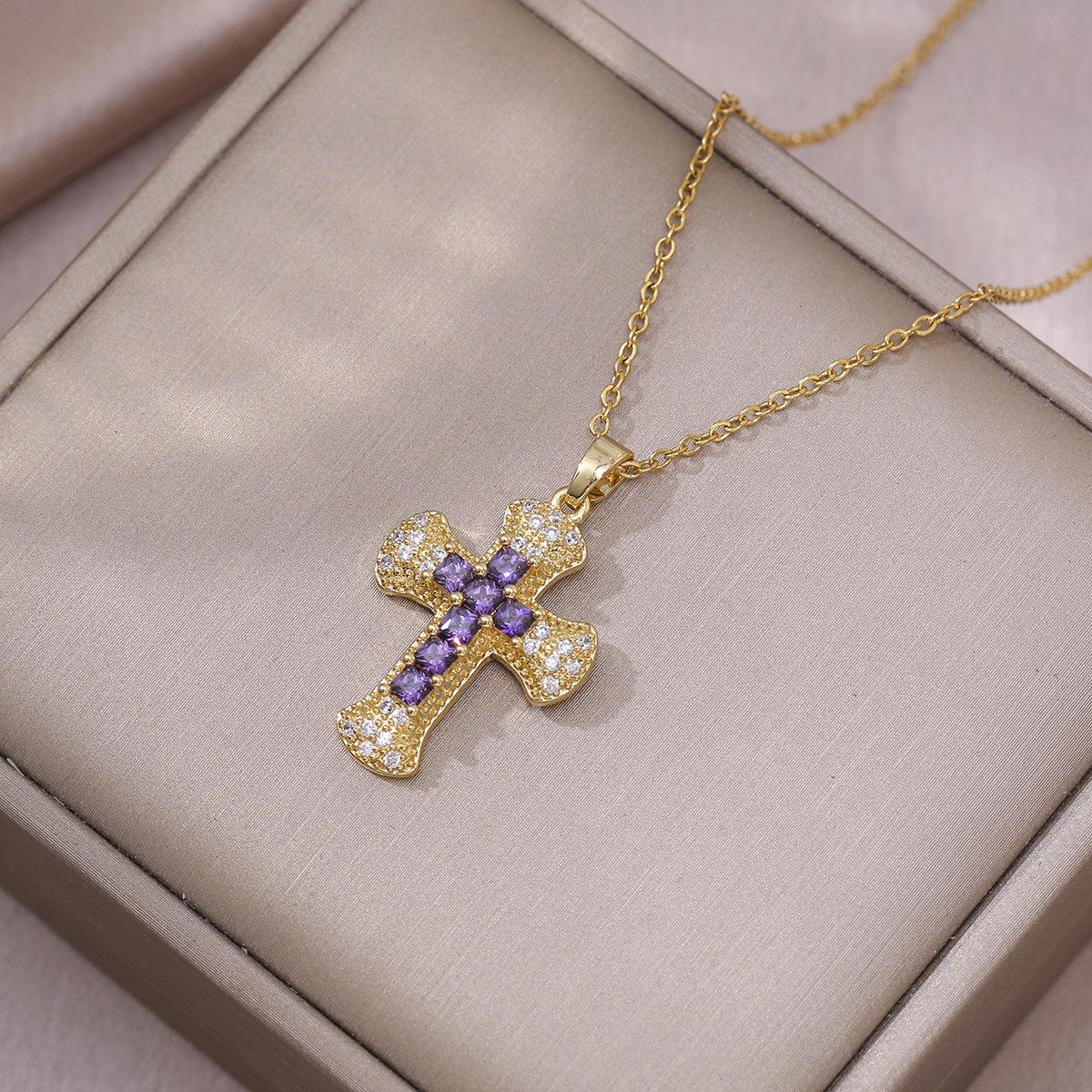 X3655 purple cross necklace