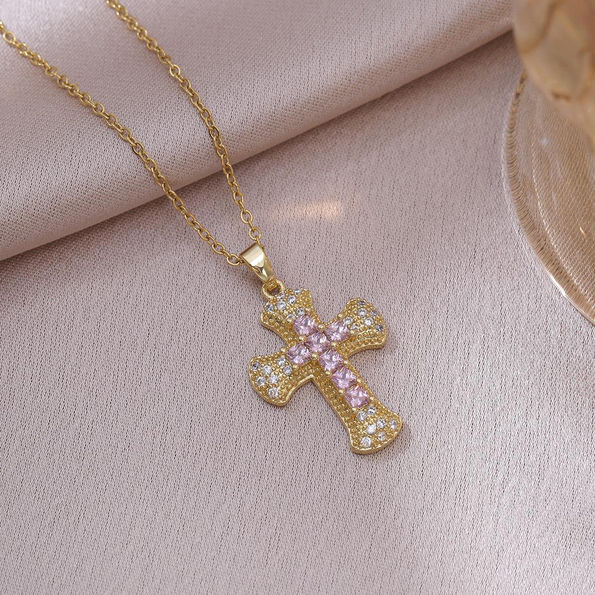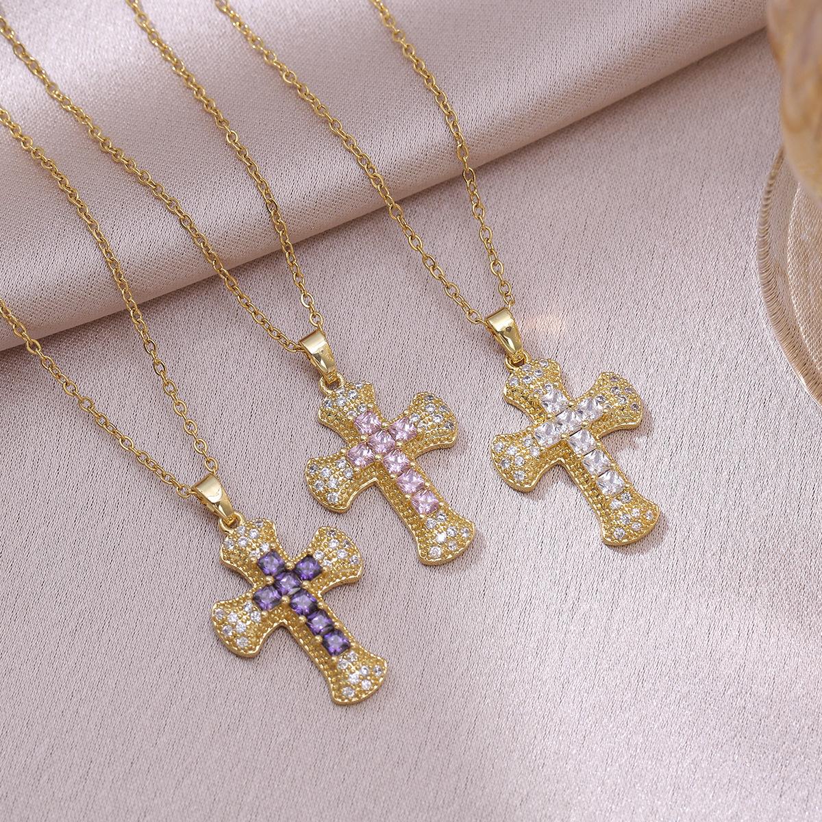 X3655 purple cross necklace, X3656 pink cross necklace, X0598 white cross necklace, Steel color cross chain