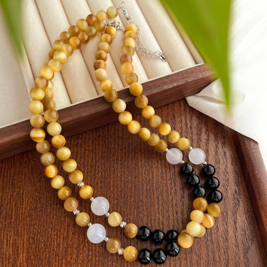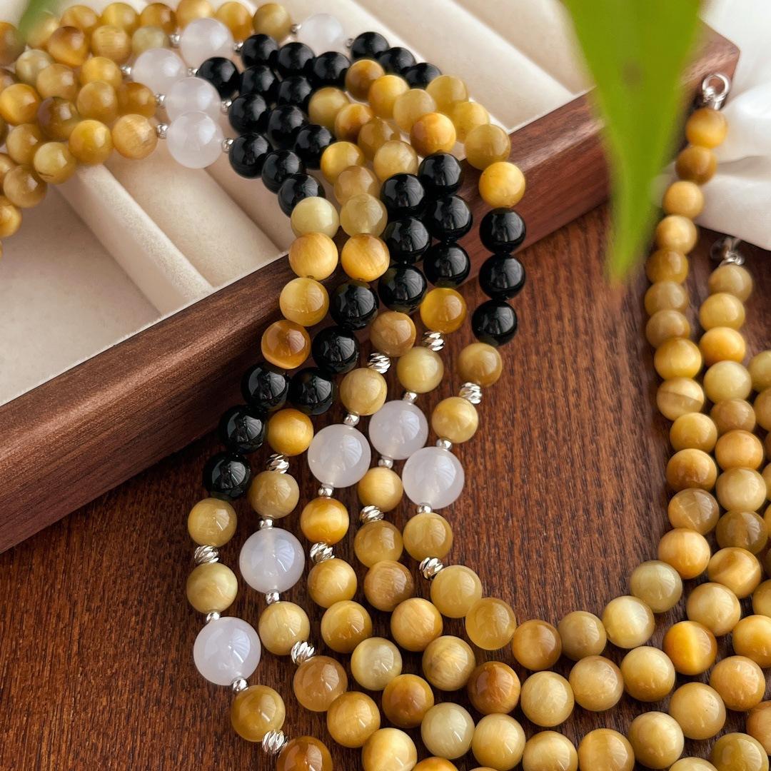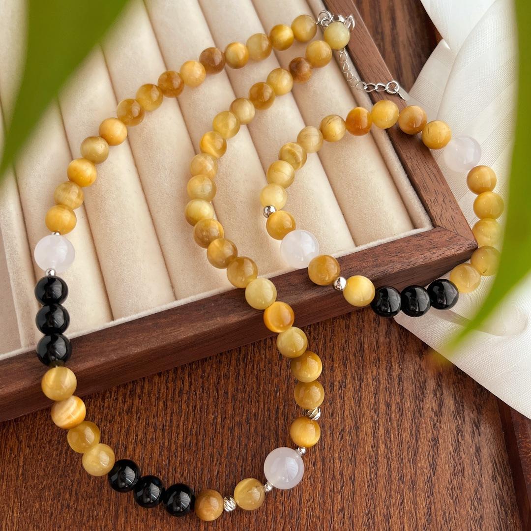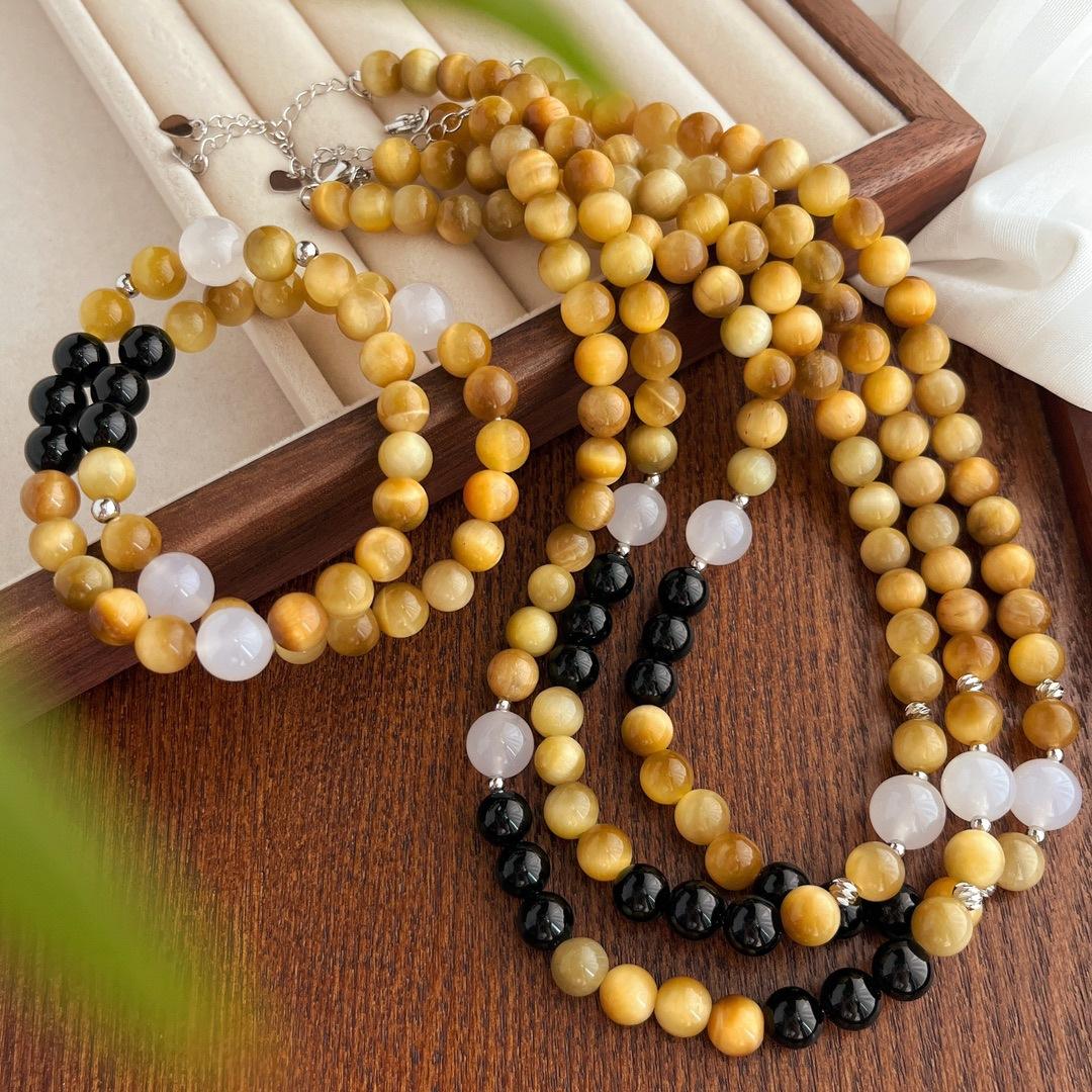Compra Traje vintage de alta calidad Ojo de Tigre Natural Ónix Negro Calcedonia Pulsera Collar Estilo Maillard al por mayor en Joom.pro