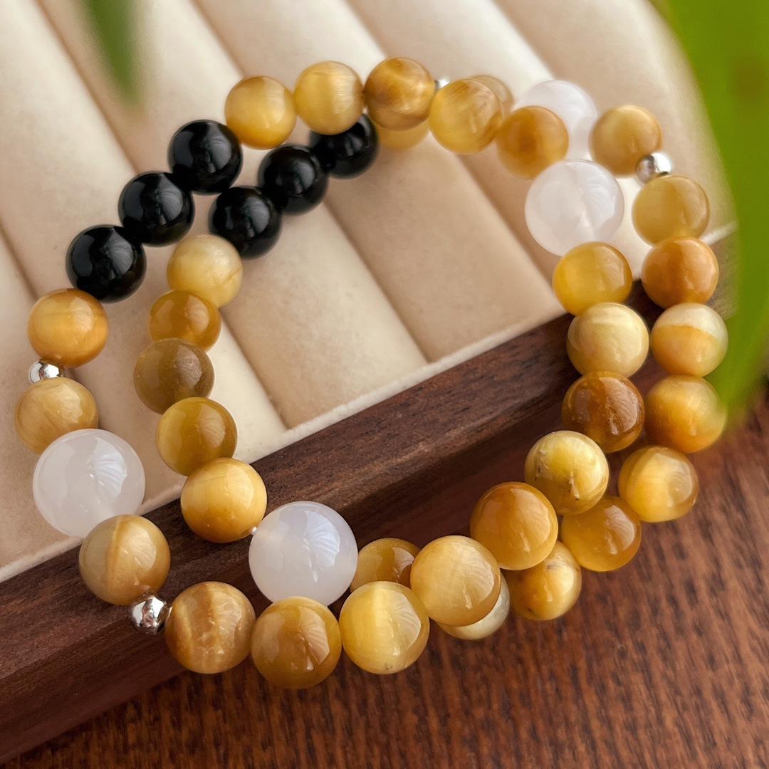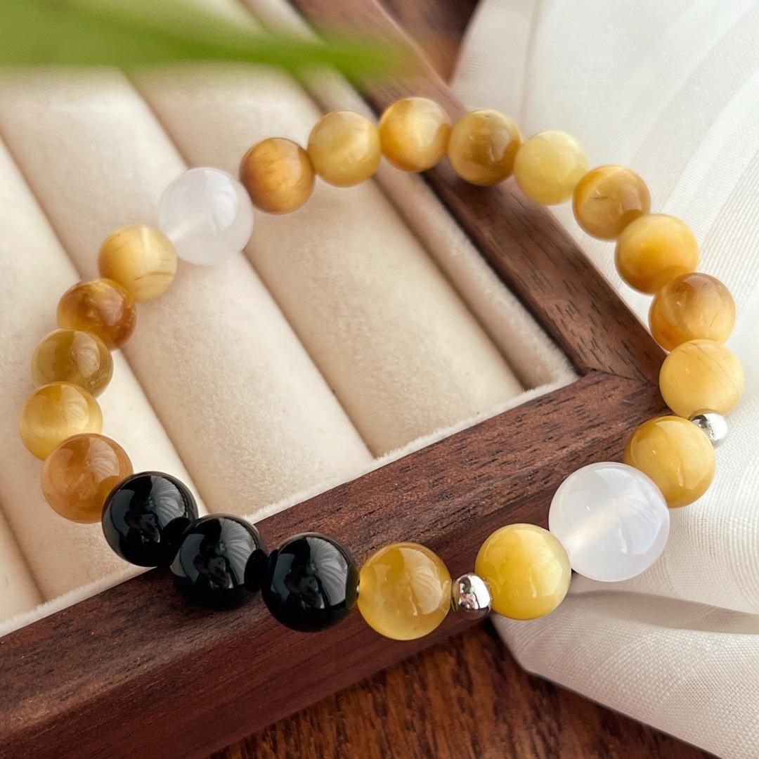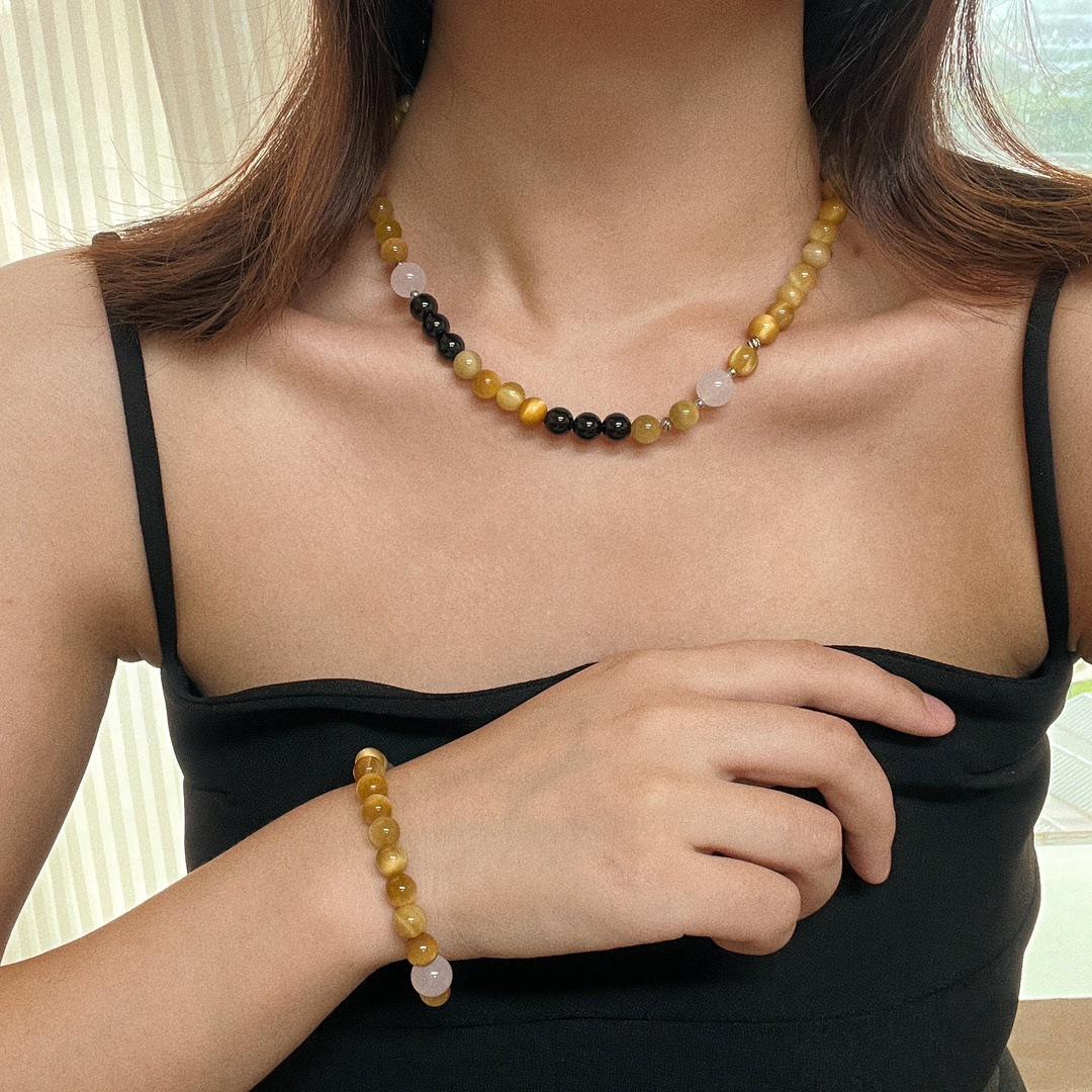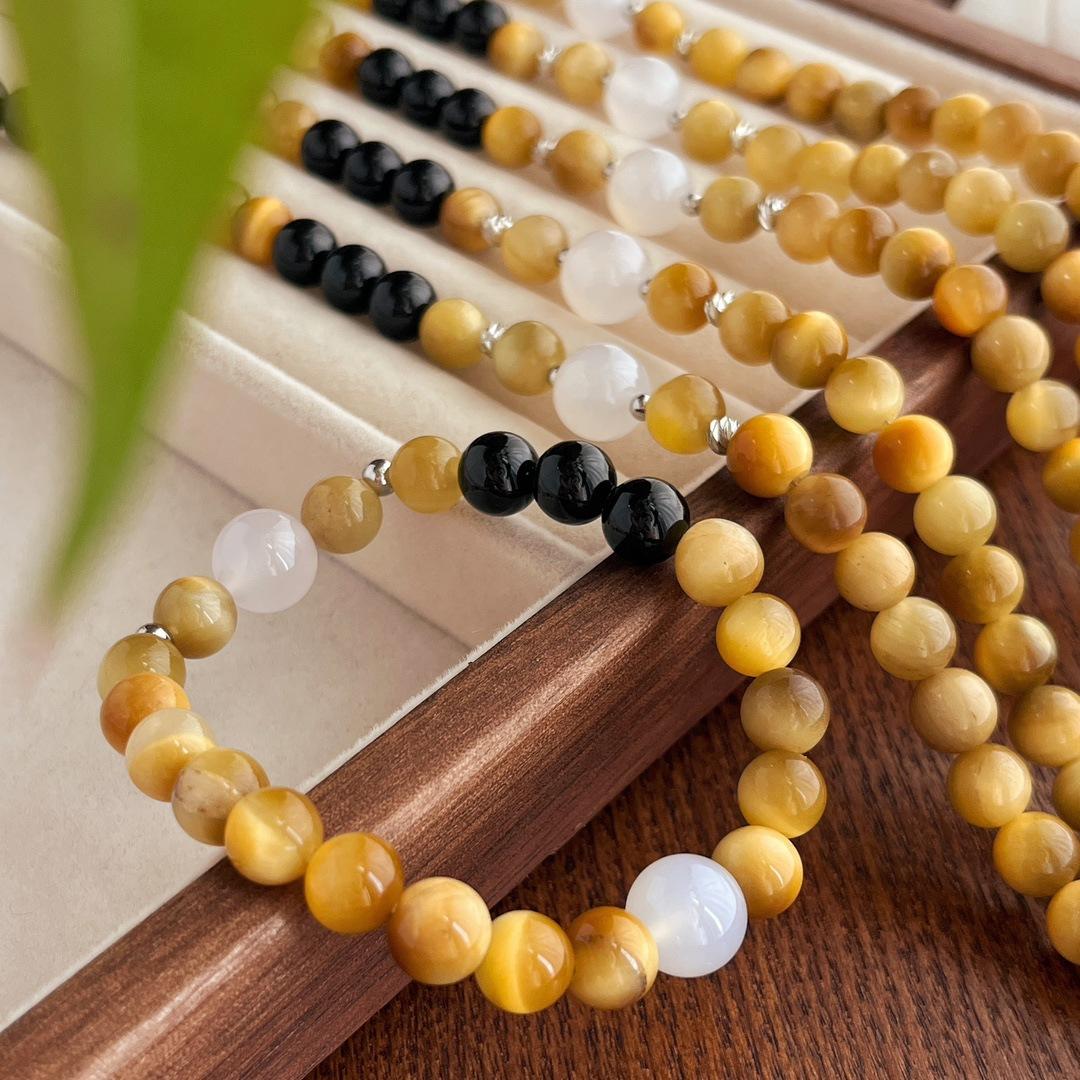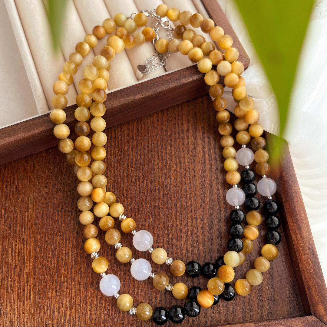 Compra Traje vintage de alta calidad Ojo de Tigre Natural Ónix Negro Calcedonia Pulsera Collar Estilo Maillard al por mayor en Joom.pro