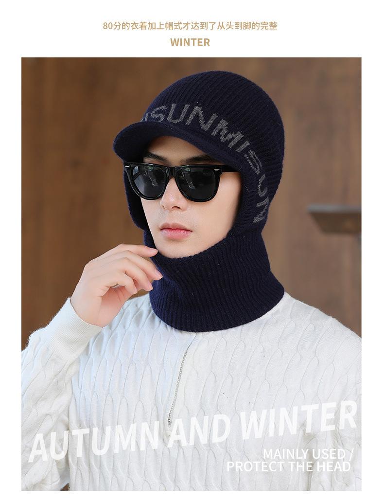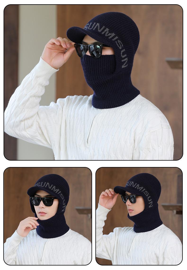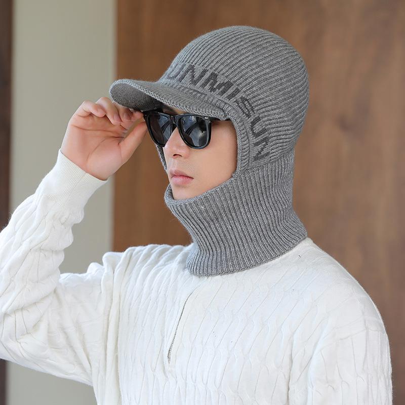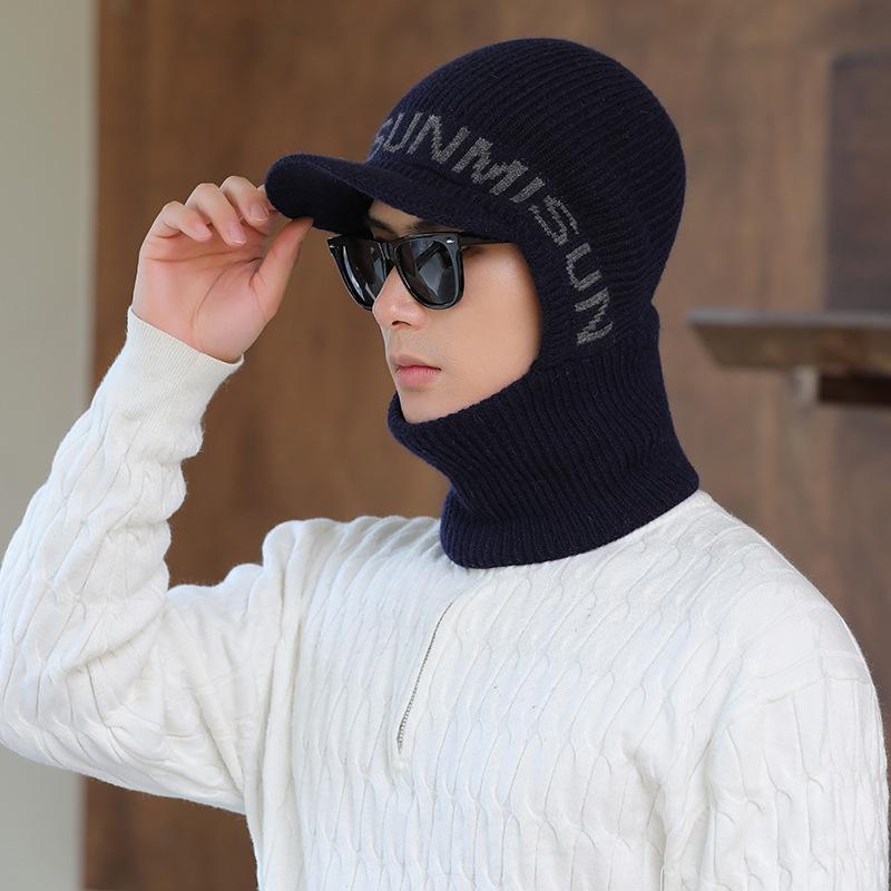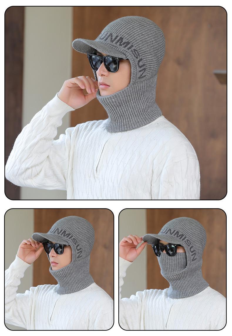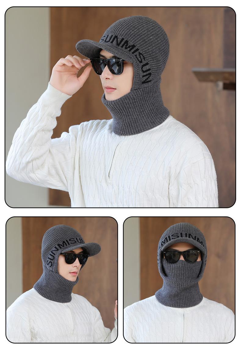 Gorro de lana gruesa y cálida para hombre, de invierno, con bufanda integrada para ciclismo, resistente al viento y al frío, de algodón, de punto.