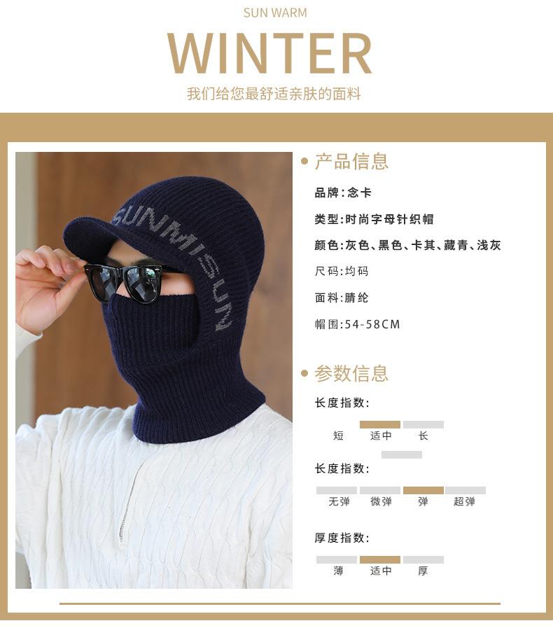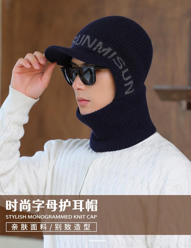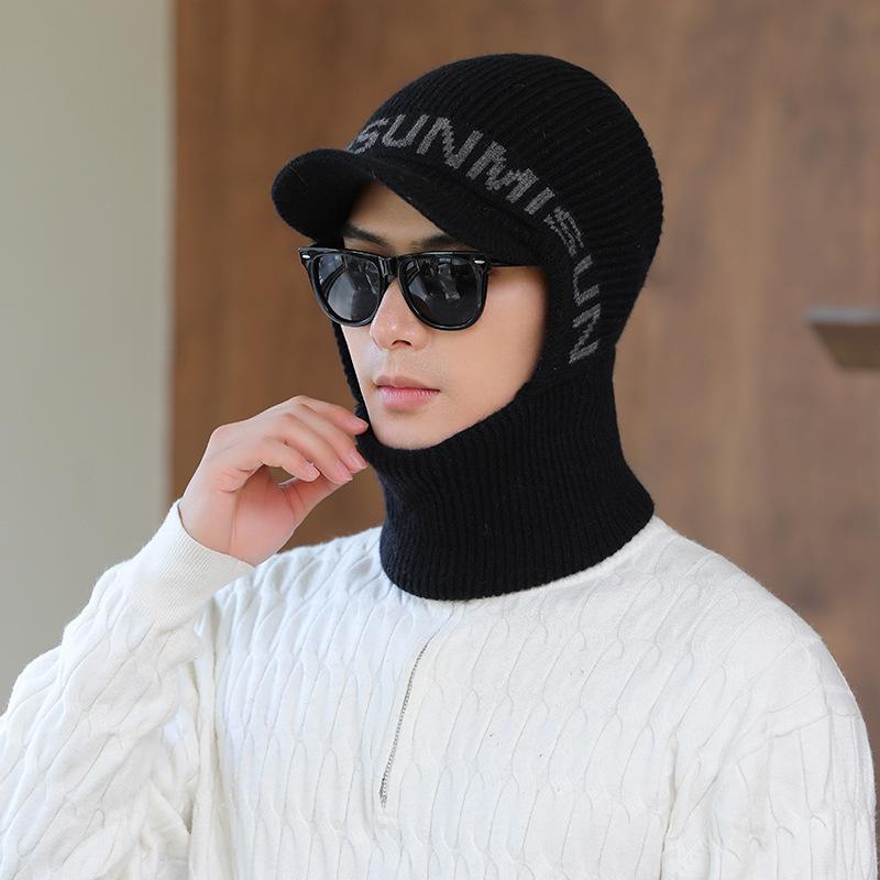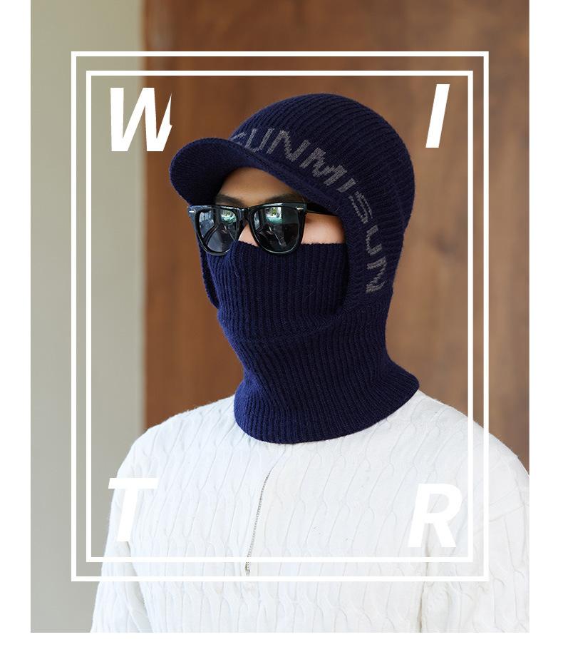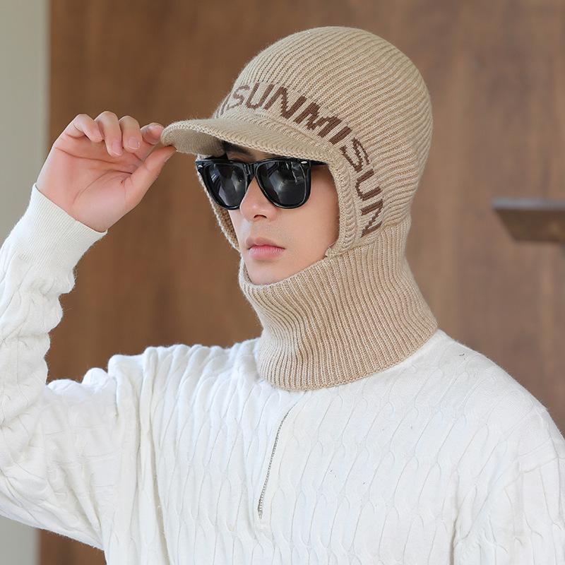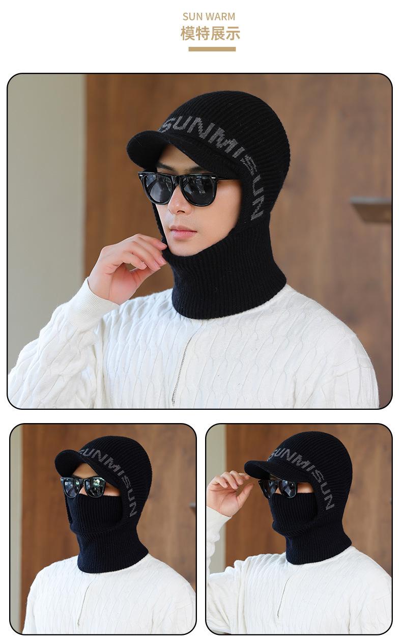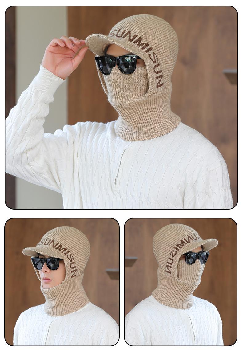 Gorro de lana gruesa y cálida para hombre, de invierno, con bufanda integrada para ciclismo, resistente al viento y al frío, de algodón, de punto.