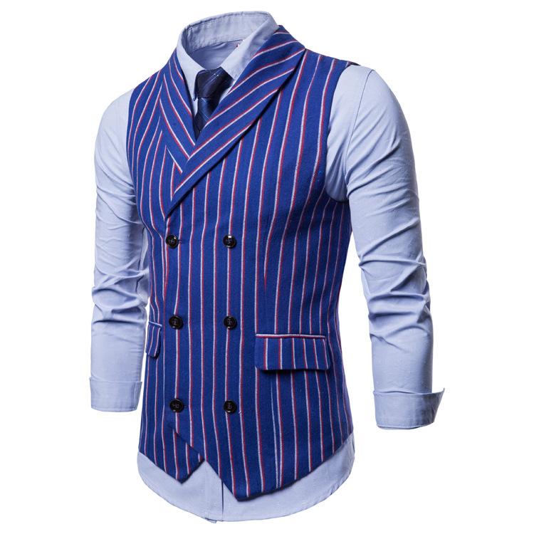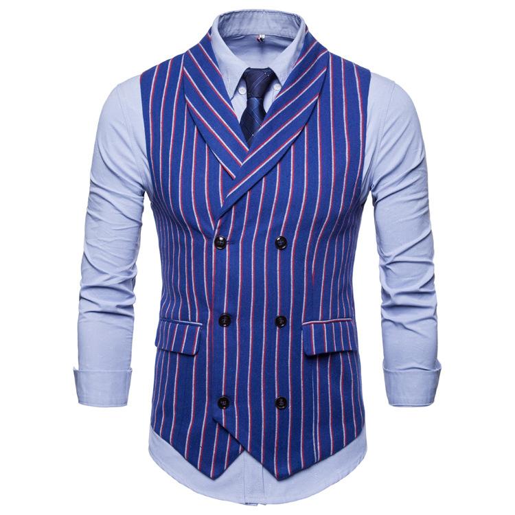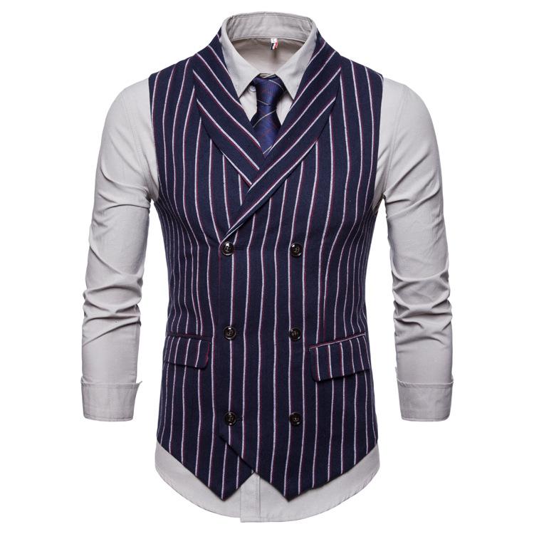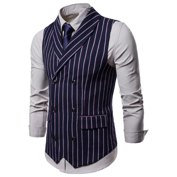Primavera y Otoño 2022 Nuevo Comercio Exterior Chaleco de Hombre Rayado Verde Cuello Fruta Transfronterizo Chaleco de Traje Casual para Hombre
