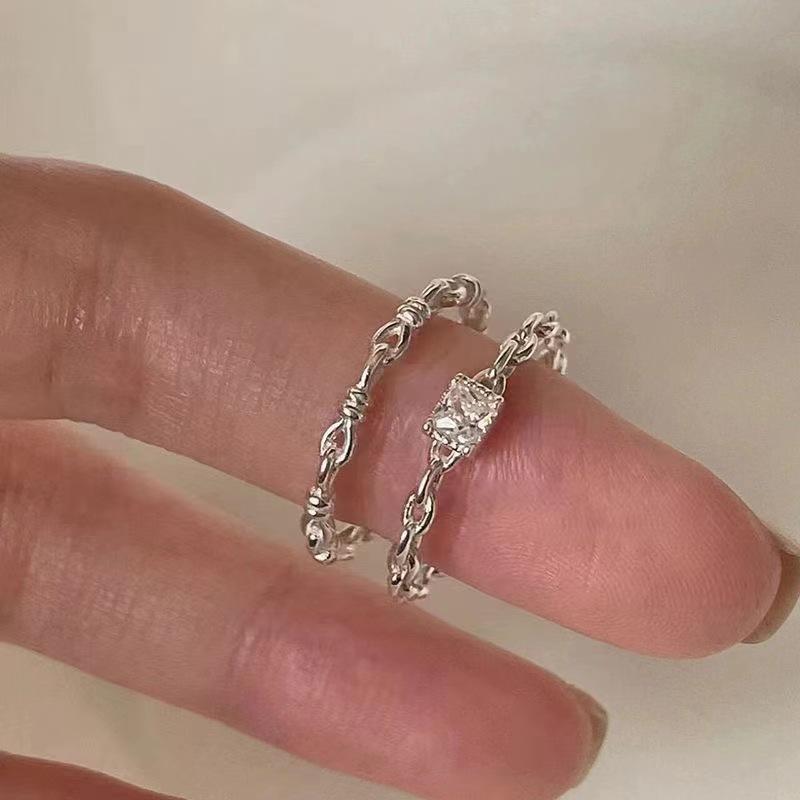 Anillo de Cadena Fina Cuadrada de Circonio para Mujer Estilo Frío Ins Sencillo Versátil Diseño Nicho Anillo de Alta Gama 2025 Nuevo Estilo